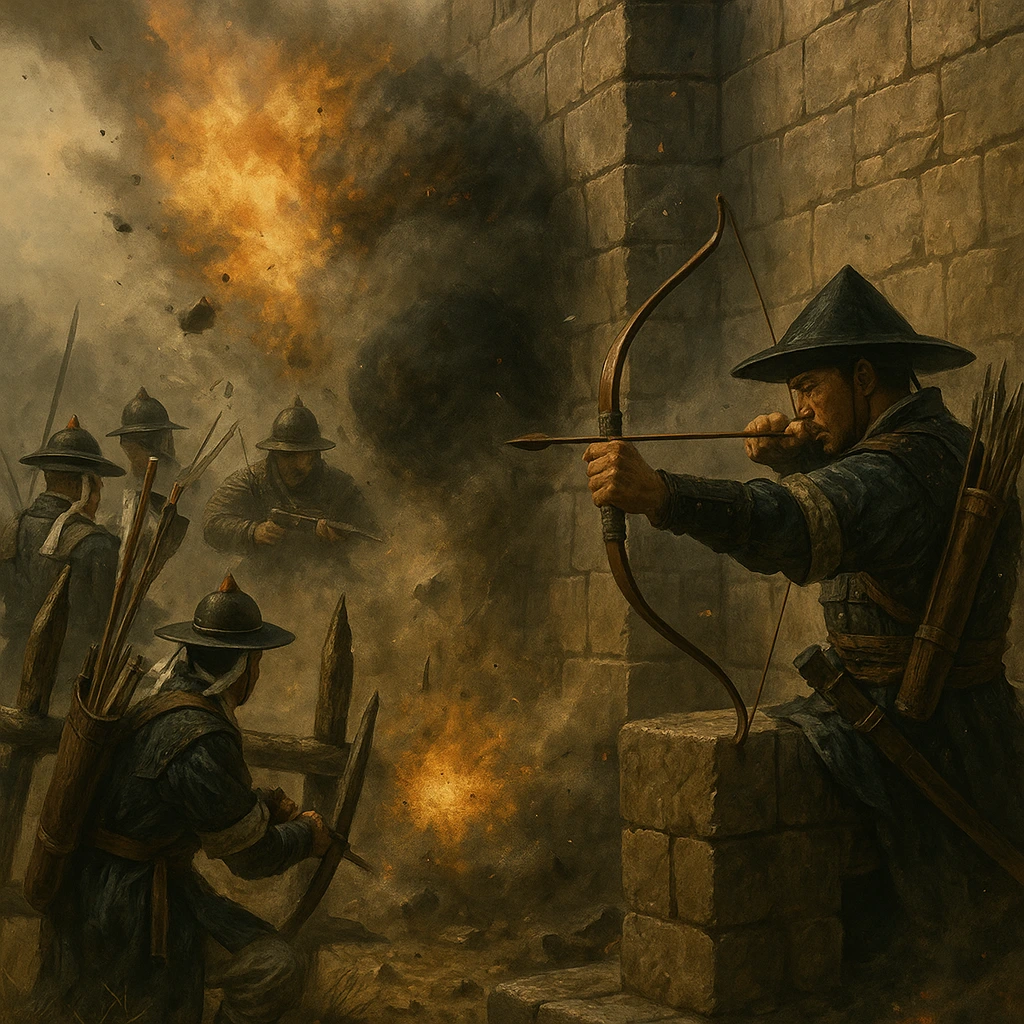 적진에서 공포 섞인 목소리가 흘렀다. 그러나 그 목소리를 덮은 것은 곧이어 쏟아진 조총의 연사음이었다. 성벽이 다시 떨렸다.