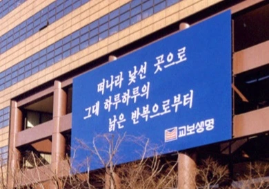 사회 초년생 시절 출근길 버스 안에서 광화문 교보빌딩 글판이 정면으로 보였다. 당시 신입사원의 단순한 잡무와 팍팍한 서울 생활에 무료함을 느끼고 있던 나에게 어느 날 아침 새롭게 교체된 글판은 유달리 선명하고 강렬했다. 나보다 더 정확하게 내 마음을 표현해 주고 있는 글판은 의미심장한 미소로 용기가 부족한 나를 지긋이 내려다보고 있었다.