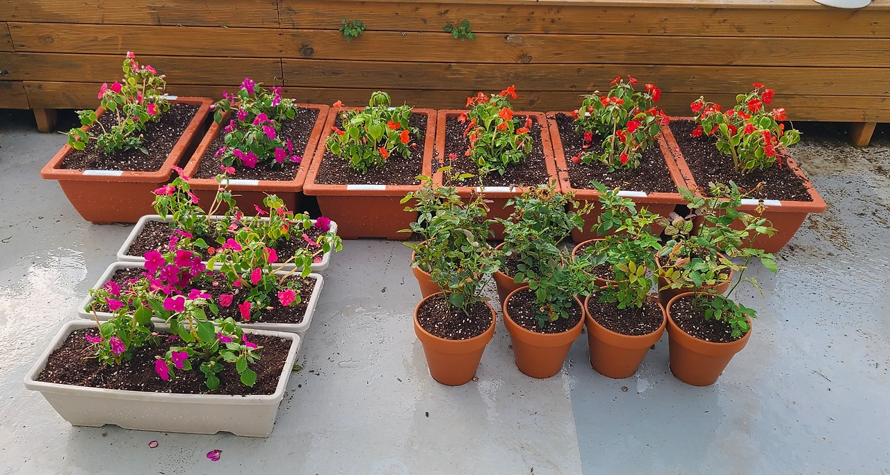 아프리카 봉선화와 미니장미는 반그늘로 이동