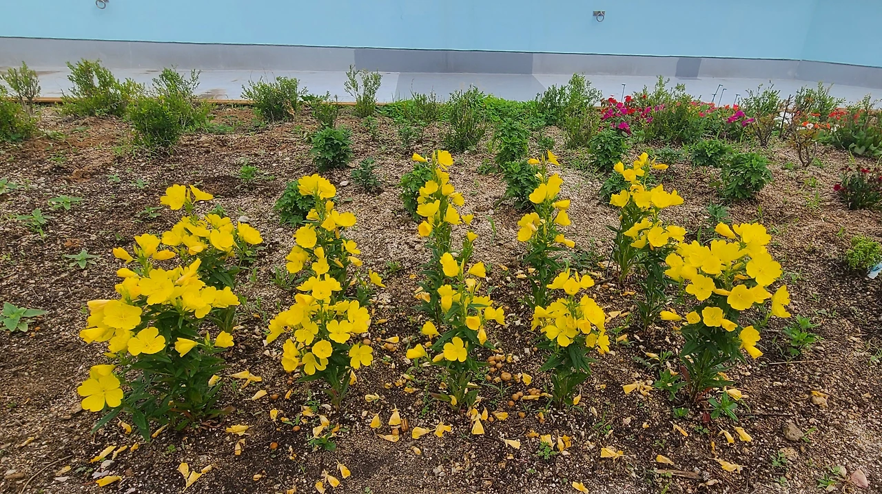 이 중에서 노란색 꽃을 자랑하는 낮달맞이꽃이 먼저 존재감을 드러내며 사람들의 시선을 사로잡는다. 지금까지 본 노란색 중 가장 진하고 선명하다. 다른 화초들이 자리를 잡아가느라 분주한 가운데 정원 내 분위기 메이커 역할을 자처하고 있다.