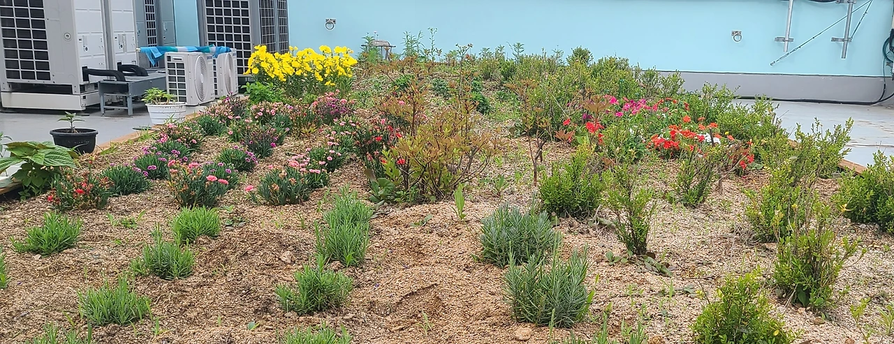 화초들로 가득 찬 옥상정원