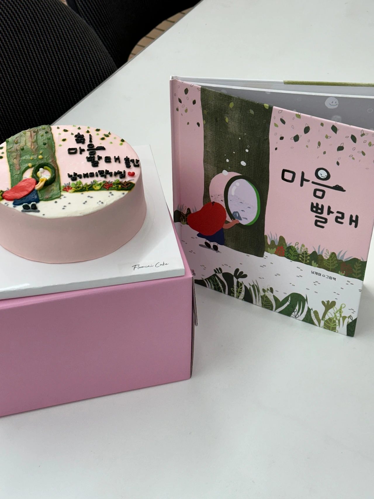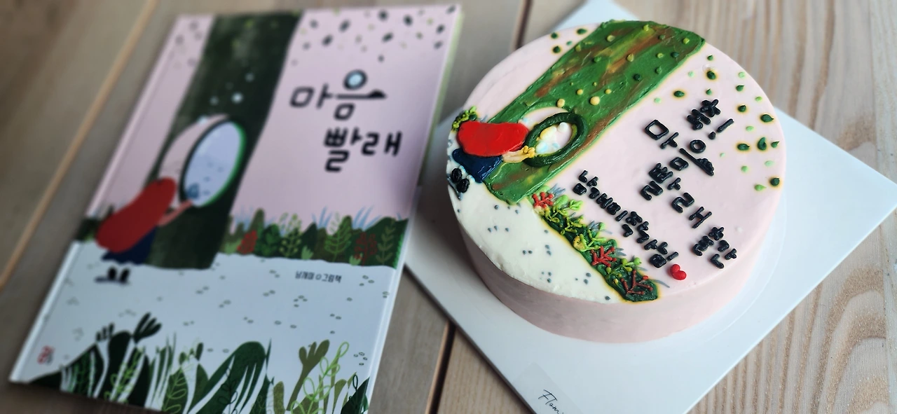 이렇게 축하를 받는 것이 처음이었던지라 아주 몸 둘 바를 모르겠다. 이렇게 나의 그림책 표지와 동일하게 구현해 낸 케이크가 신기했고, 이렇게 며칠 만에 나의 출간을 축하해 주시려고 준비해 주신 선생님들의 마음에 감동받았다. 아까워서 먹기 아까운 이 케이크를… 어디 얼려 놓고 보기만 할 수 없을까? 여전히 고민 중이다.