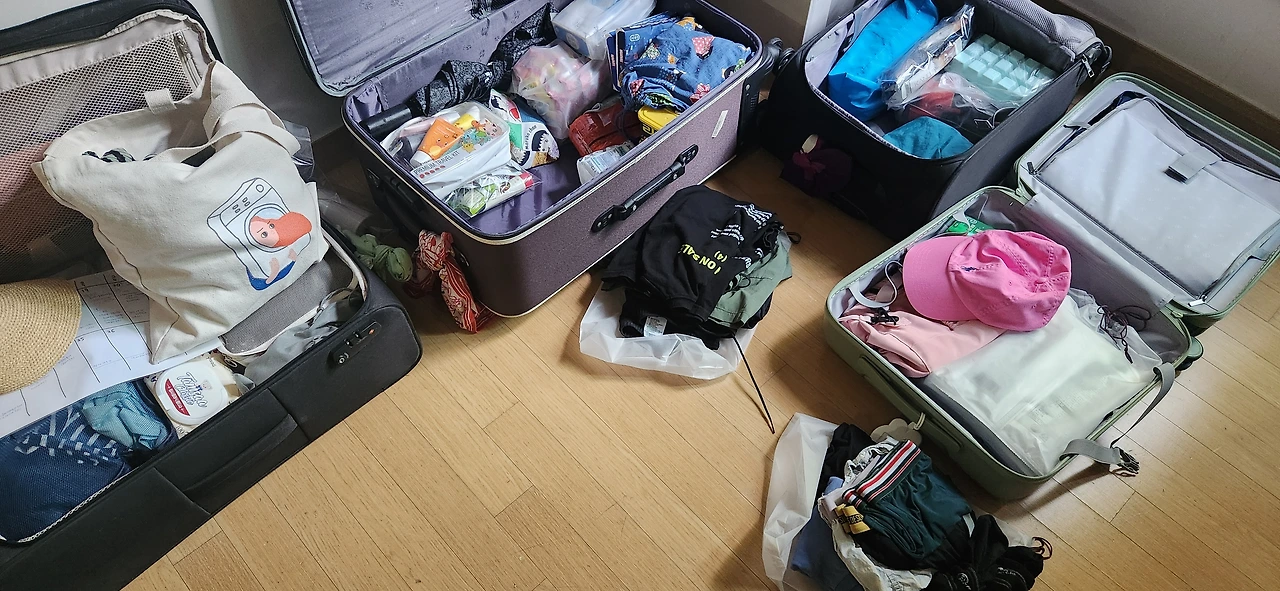 짐을 줄이려고 생각하면서 짐을 쌌지만, 4명의 각 캐리어에 반이 요리와 관련된 짐이다. 그래도 이것들은 올 때 다 배 속에 들어가 있을 테니 텅텅 비어 있을 것이다. 다행히 로마가 아직은 낮에 덥다 하여 옷은 그리 두껍지 않을 것 같다. 에어비앤비에 세탁기와 건조기 둘 다 있다고 하니 옷도 조금 가져가서 돌려 입으려 한다. 그렇게 우리 4명의 캐리어는 차곡차곡 짐이 들어가고 있다.