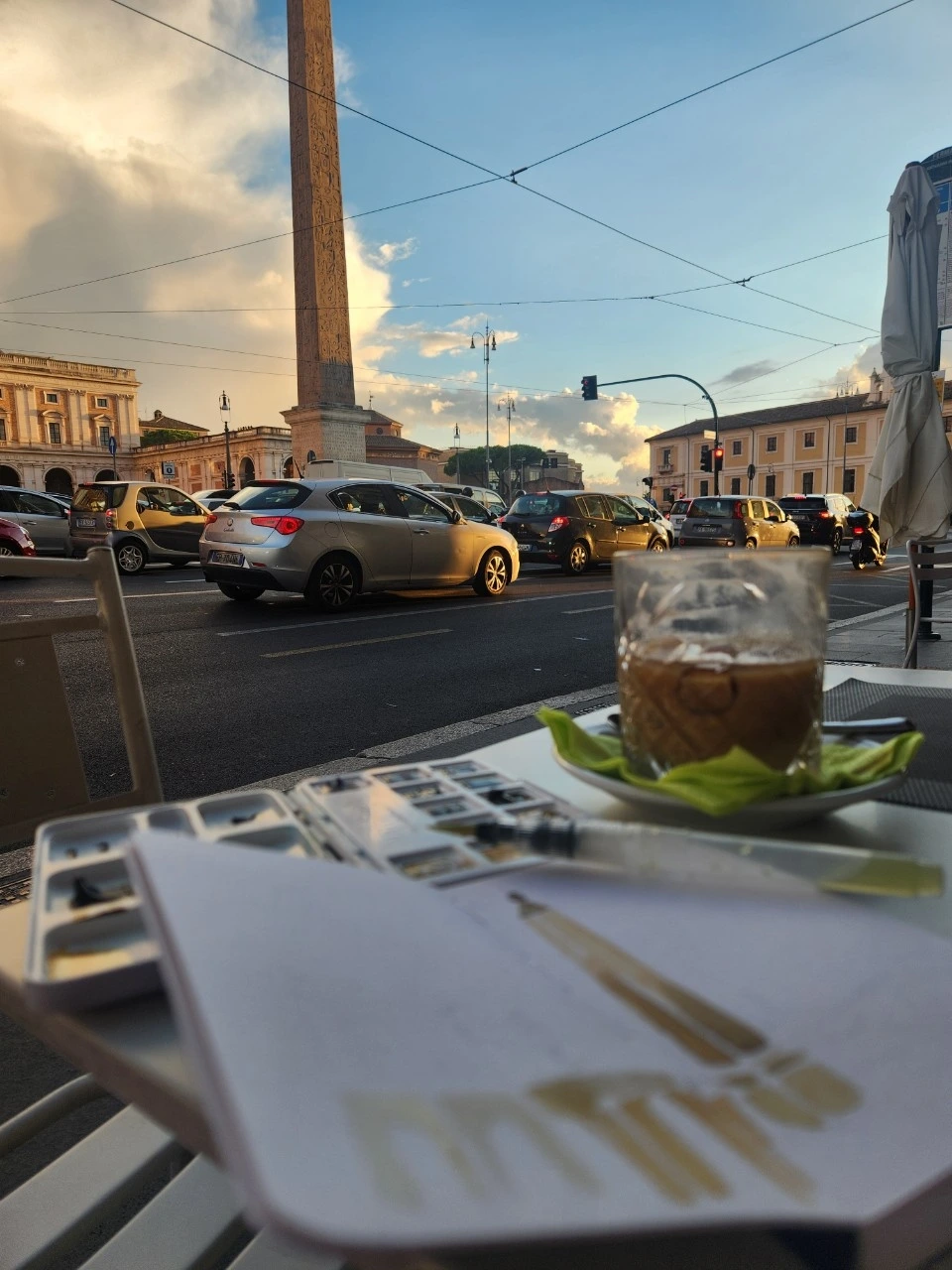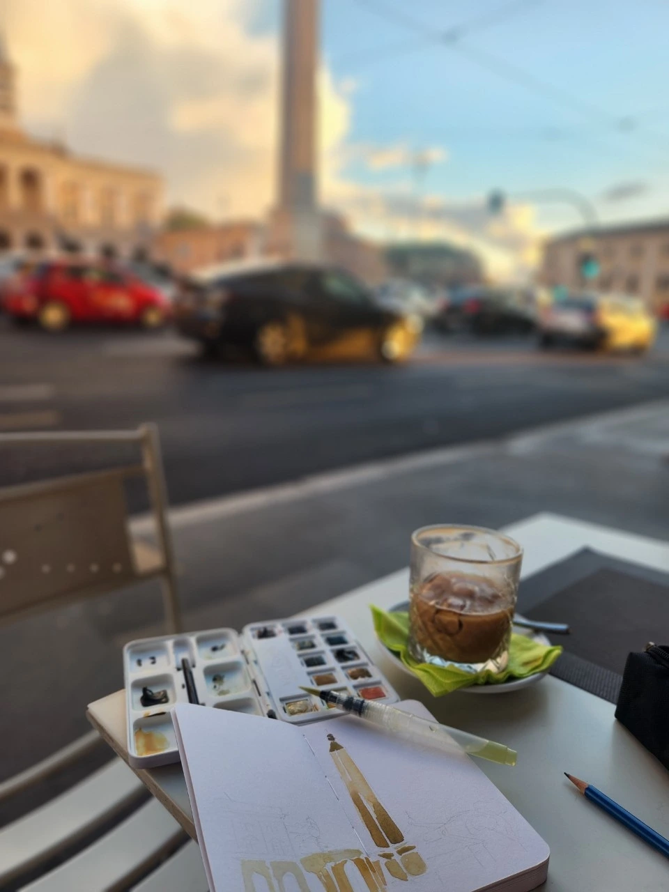그렇게 5시 반경, 나는 그림 마무리를 하고 주섬 주섬 다시 짐을 쌌다. 로마 둘째 날, 처음으로 카페에 혼자 간 것이었는데 이것이 혼자 카페를 간 처음이자 마지막 시간이었다. 나중에는 이렇게 자유시간이 생겨도 밖에 나갈 힘조차 없이 침대에 누워 있었기 때문이다. 이날은 아직 나에게 체력과 여유가 있었나 보다. 사진만 찍어두고 나중에 한국에 가서 천천히 그려야지,라고 점점 나태해졌다.