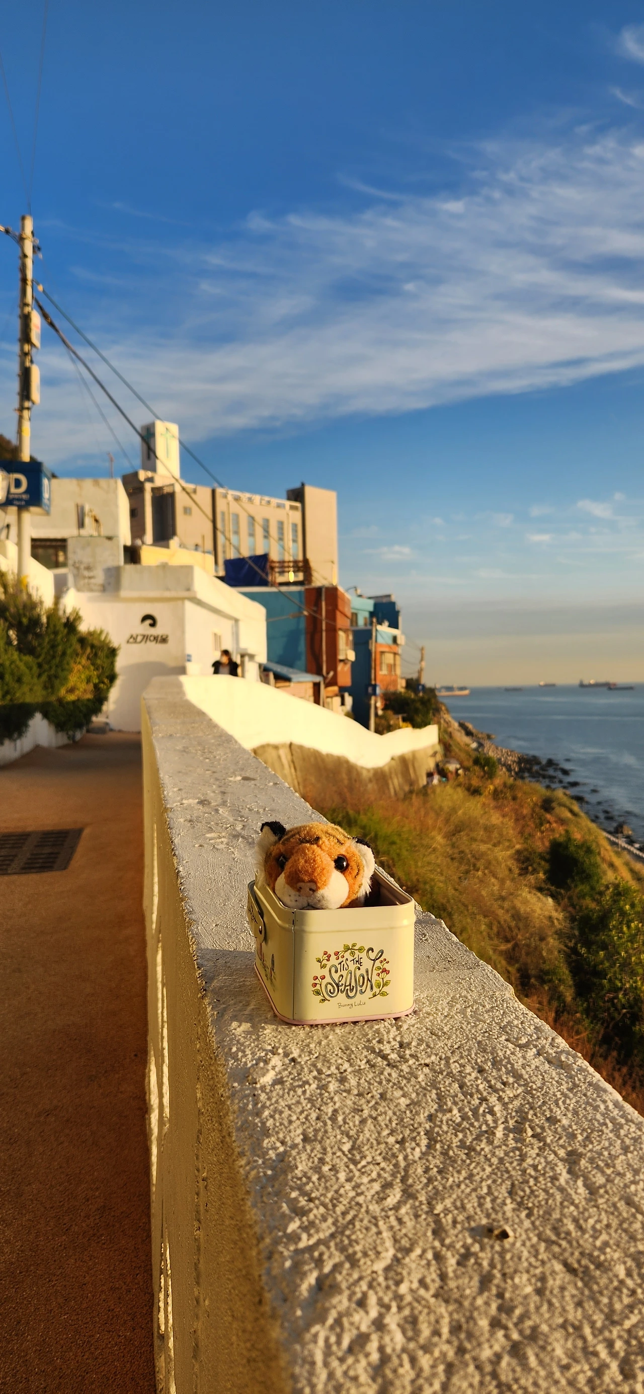 제일 먼저 간 곳은 흰여울 문화마을. 왜 이곳에 영화 촬영지인지, 가보면 한눈에 알 수 있다. 바다를 바라보며 작은 집, 가게들이 너무나 운치 있게 줄지어 있다. 곳곳 계단과 벽에 그림이 그려져 있고 가게들 또한 자신들만이 가진 예술성을 뽐내고 있다. 얼핏 보면 흰색과 파란색 지붕이 눈에 띄어 산토리니 같은 느낌도 든다.