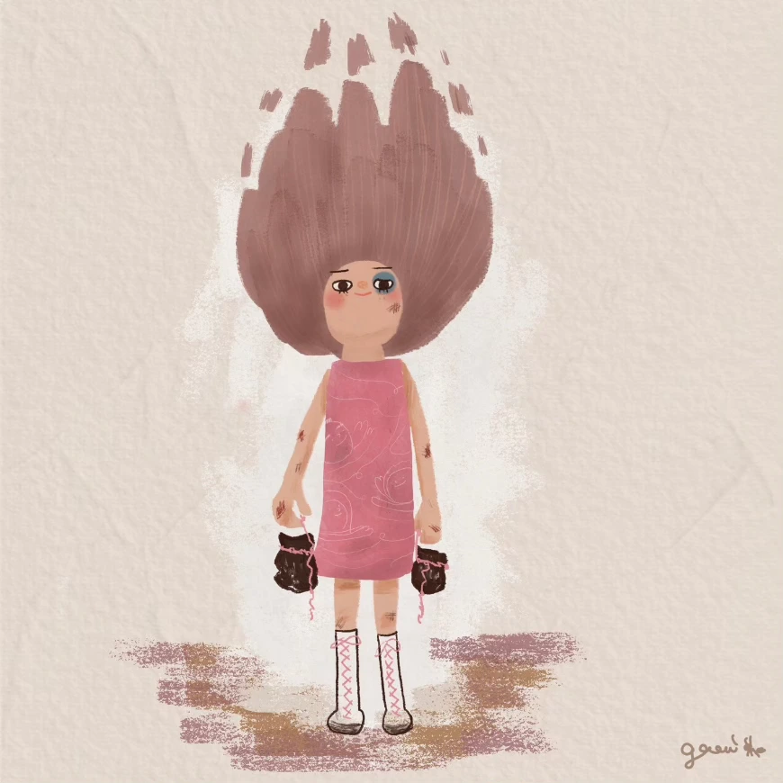에바 알머슨의 그림 중 권투장갑은 두려움을 당당히 맞서 나가는 자세를 표현했다고 한다. 권투장갑을 갖고 있기에는 야리야리한 그녀의 그림이지만, 살짝 미소 지은 주인공의 얼굴을 보며 왠지 모른 강인함이 느껴진다.