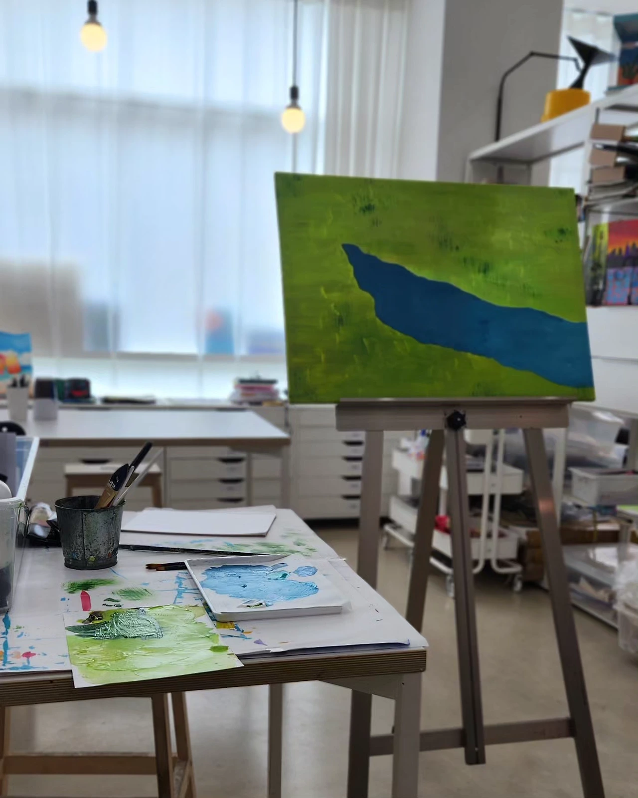 그래서 선생님은 내가 그리고 싶은 것을 내가 스스로 정하게 하고 재료는 함께 고민해 주셨다. 성인반은 보통 1,2명이 수업을 해서 학원 전체를 거의 혼자 대관해서 쓰는 느낌이다. 그래서 그런지 집중이 잘 된다. 그 고요함. 살짝 클래식이 흐르며 하얀 도화지 앞에 앉아 무엇을 그릴까 고민하는 시간. 그리고 곳곳에서 묻어 나오는 미술도구 냄새들. 내가 사랑하는 시간이다.