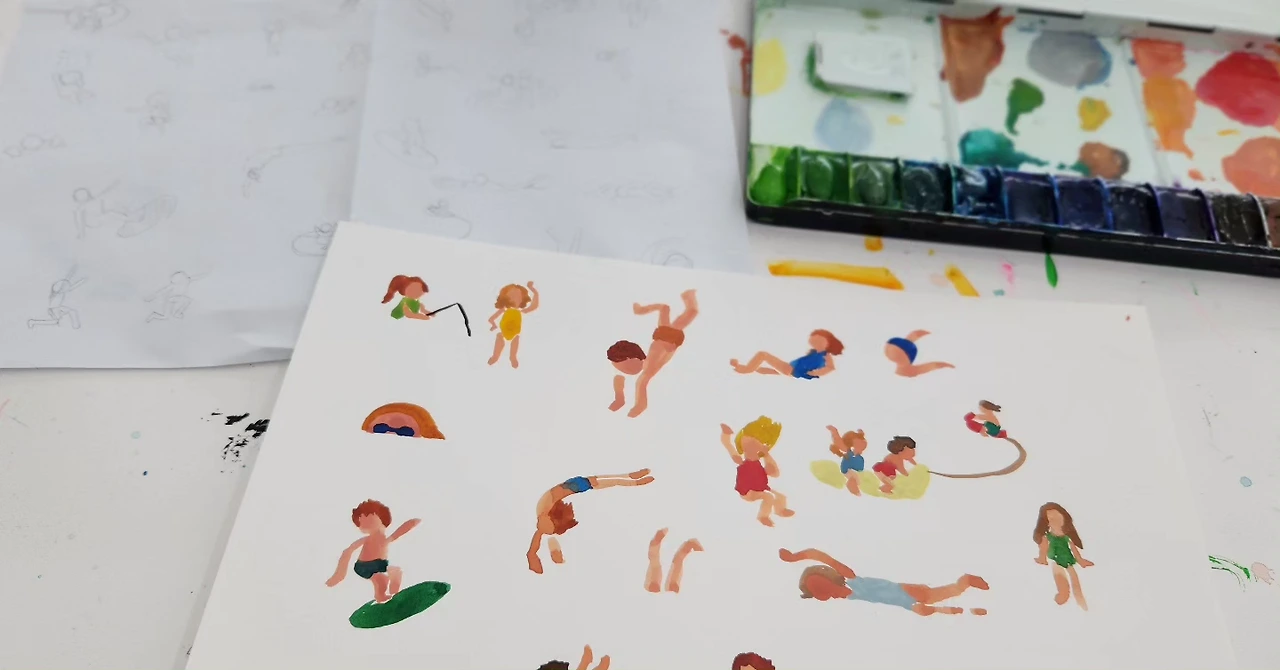 첫 달은 인물화를 연습하고 수채화로 물맛을 배워갔다. 그리고 전시회 작품을 위해 콜라주를 도전해 보았다. 먼저 내가 그리고 싶은 그림을 스케치해 갔다. 그러나 늘 스케치대로 그림은 완성되지 않는 법. 그리다 보면 구도가 바뀌기도 하고, 또 어떤 날은 스케치한 종이를 집에 놓고 오는 바람에 내 기억에만 의존해서 그리기도 했다. 스케치 완성 후 처음으로 아크릴 물감을 쓸 때 설렘이 아직도 생각난다. 수채화와는 또 다른 맛의 아크릴. 꾸덕하면서도 붓의 터치가 남으면서 그것 또한 하나의 그림으로 완성된다.
