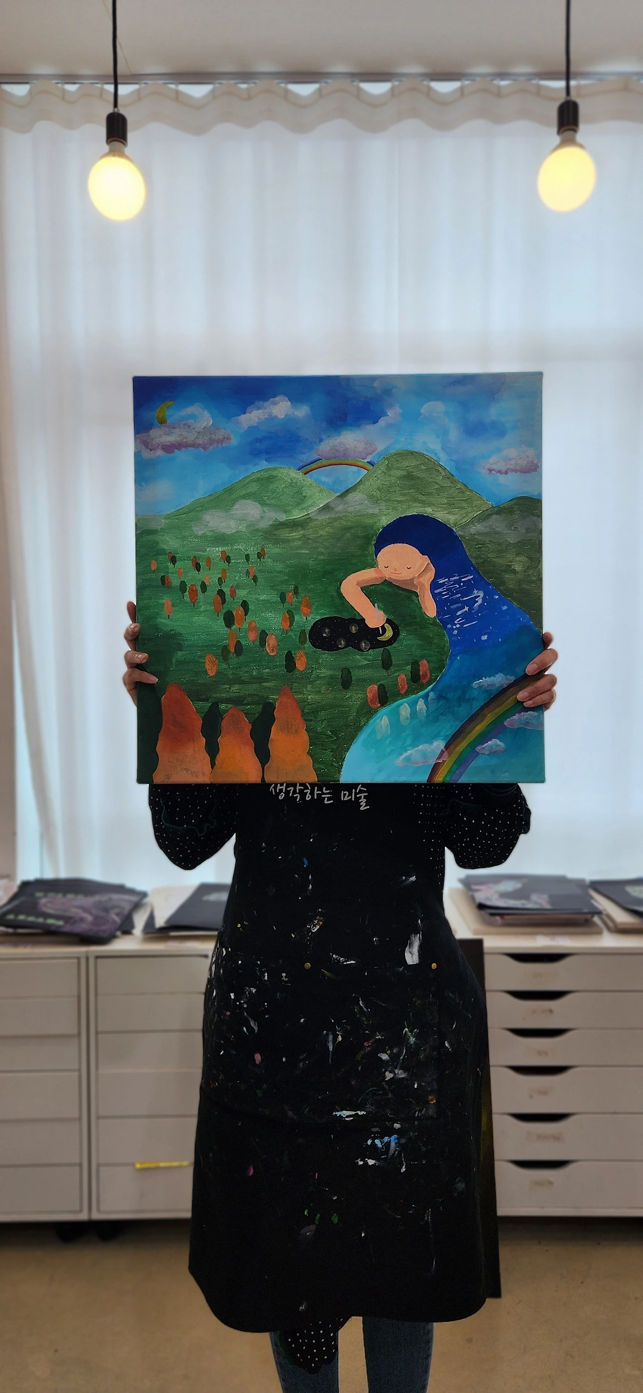 그렇게 현재 아이패드로 그림책 작업을 하는 중이다. 그리고 내 옆에서 종알 종알 대면서 내 딸도 아이패드로 그림을 그린다. 너무 행복한 일상. 다만 그림의 근본적인 지식, 기술이 없던 나는 늘 목말라 있었다. 도대체 어떻게 표현해야 하지? 구도는 이게 맞나? 등... 그래서 다니기 시작한 것이 동네 미술학원. 남편은 고가의 아이패드를 샀는데, 왜 굳이 미술학원에 가서 원화 작업을 하는지 이해하지 못하는 눈치다. 그러나 그림을 그리는 사람을 알 것이다. 아이패드에서 그림을 잘 그린다고 원화를 잘 그리는 것이 아니고, 원화를 잘 그리는 사람이 반드시 아이패드로 그림을 잘 그리지 못한다는 사실을. 그리고 둘 다 잘 그리는 사람이 진짜 작가라고 생각이 들었기 때문에 나는 또 욕심을 냈다. 미술학원에 가서 내가 원한 것은 딱 3가지였다.