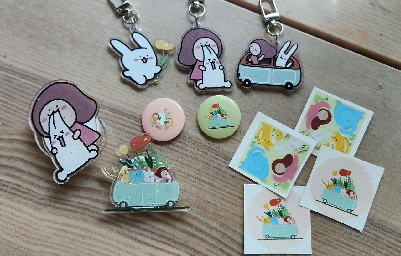 나는 지금껏 내가 그린 그림들로 만들어 본 것이 고작 스티커, 그리고 내가 사용하려고 만든 에코백, 달력 정도였다. 아무리 한 부스를 3명이 채운다 해도 어느 정도 볼륨이 있어야 하는데, 일단 그걸 채워야 한다는 고민이 생겼다. 이제는 지인에게 나눠주기 용도가 아닌, 제 값을 받고 팔아야 하는데 퀄리티가 나쁘면 안 된다! 먼저 여기저기 샘플용으로 주문을 해봐야겠다는 생각이 가장 먼저 떠올랐다.
