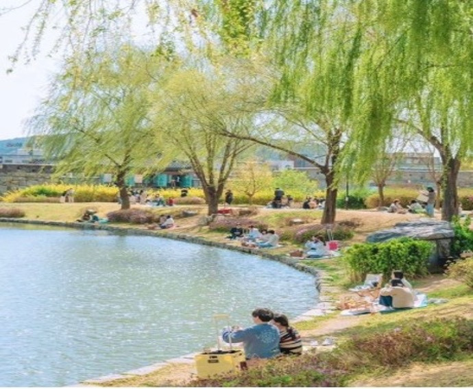 첫번째 장소는 바로 ‘방화수류정’이다. 방화수류정은 화성행궁의 각루 중 하나이고 앞에 용연이 있어 풍경이 매우 아름다워 사람들에게 사랑받는 데이트 장소 중 하나이다. 용연 앞에 돗자리를 깔고 대화를 나누며 맛있는 음식을 먹거나 저녁에는 간단하게 술 한잔 하기에도 좋다. 밤에는 아름다운 야경과 함께 주변을 산책하면 그 자체로 힐링을 느낄 수 있다. 낮과 밤 모두 예쁜 방화수류정이지만 특히 일몰 때 바라본 풍경은 예술이다. 날씨가 좋은 어느 날 연인 혹은 친구와 함께 방화수류정을 방문해보시길 추천한다.