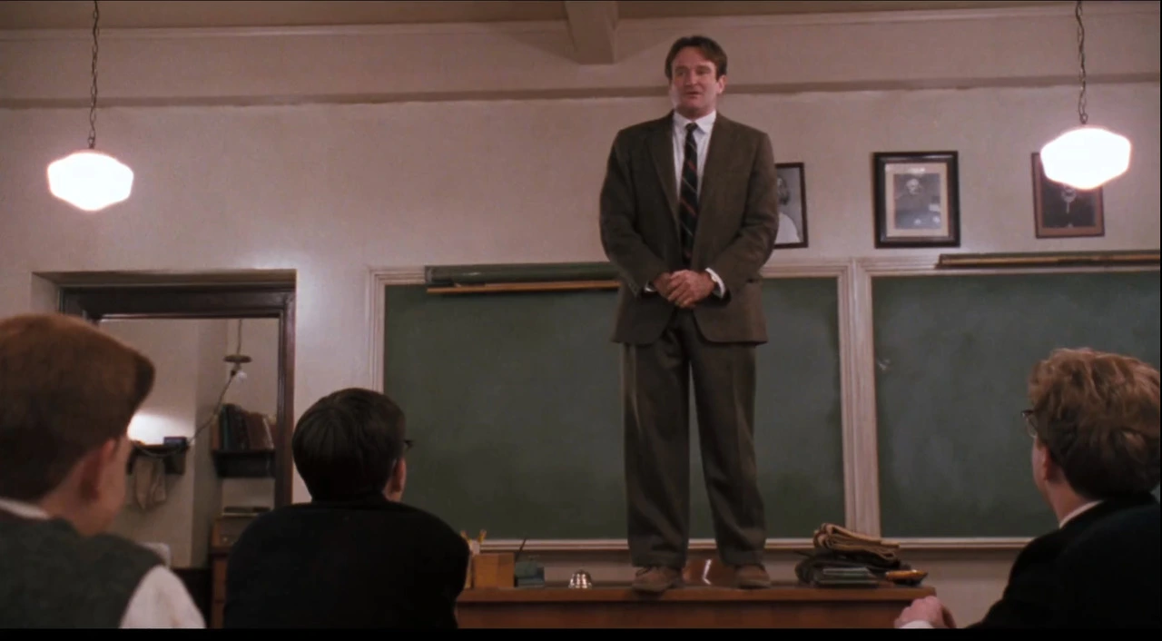 영화 <죽은 시인의 사회>는 전반부와 후반부에 위치한 두 씬의 반복으로 유명하다. 본 영화에서의 반복은 학생들이 키팅 선생님과 같은 마음을 하고 있음을 전하며 진한 울림을 준다.