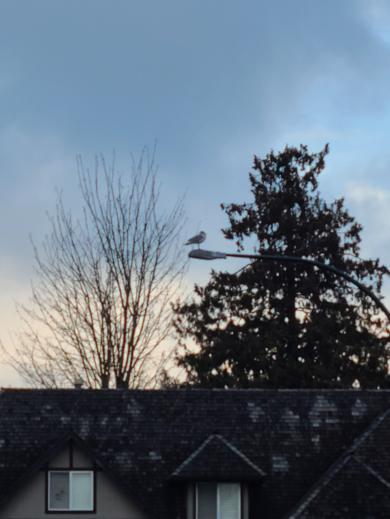 집 앞 가로등 위의 갈매기