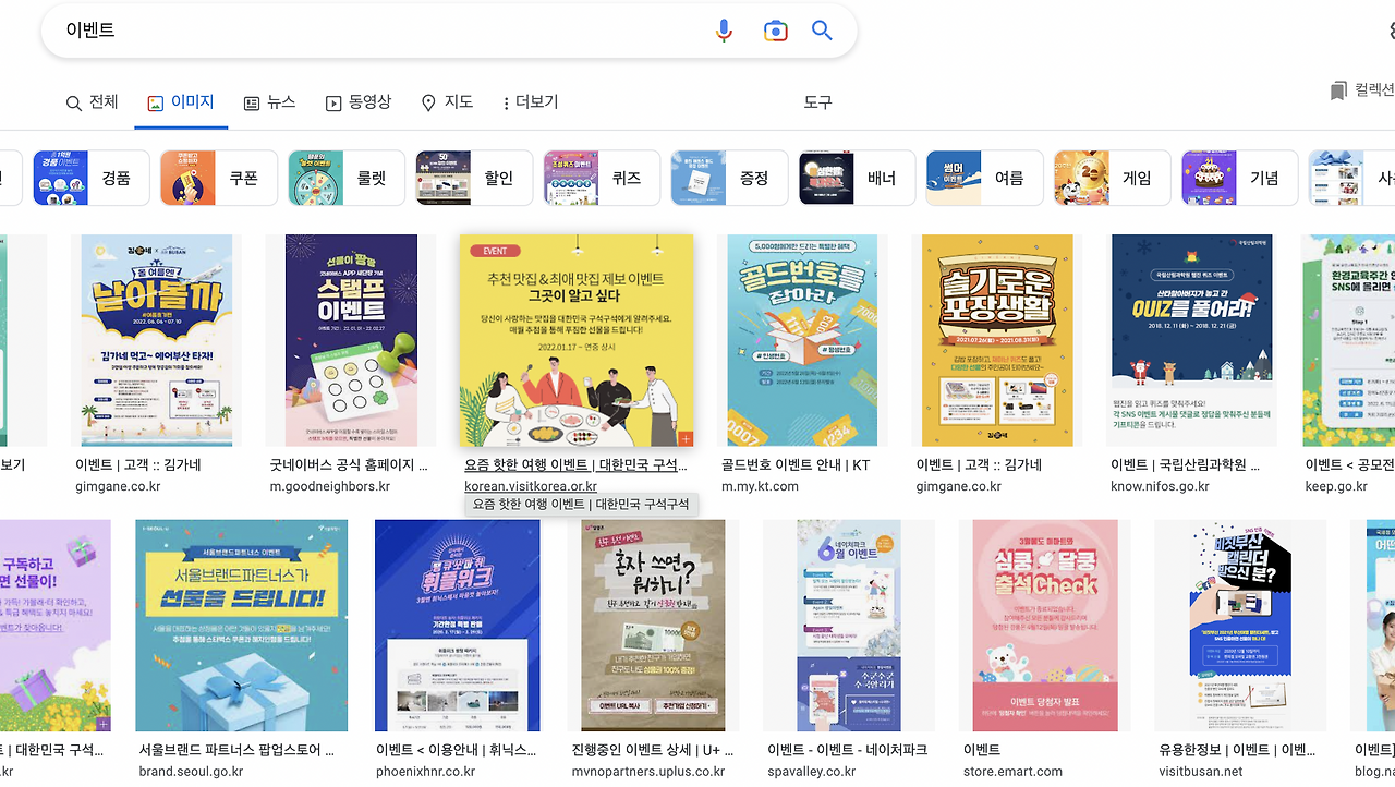 실제로 “이벤트"를 구글에 검색하면 대부분 제품 할인 및 홍보와 연관된 이미지가 상단에 노출되는 것을 확인할 수 있다.