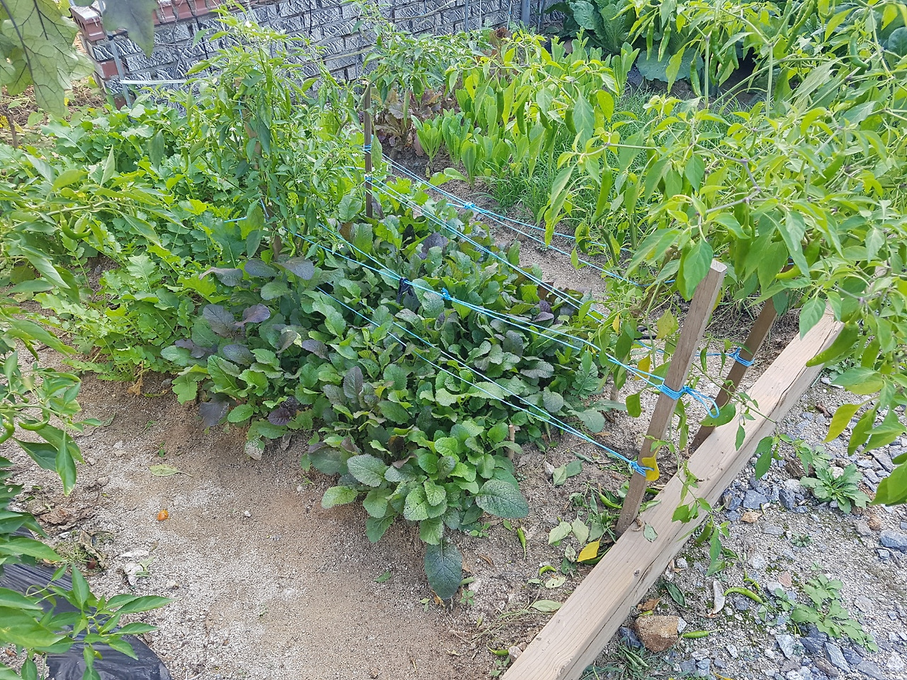 텃밭의 틀이 잡히고 씨앗을 직접 심거나 모종을 심은 작물들이 어느 정도 커가며 모래밭 같던 텃밭은 다양한 모양으로 푸르고 풍성해져 갔다.