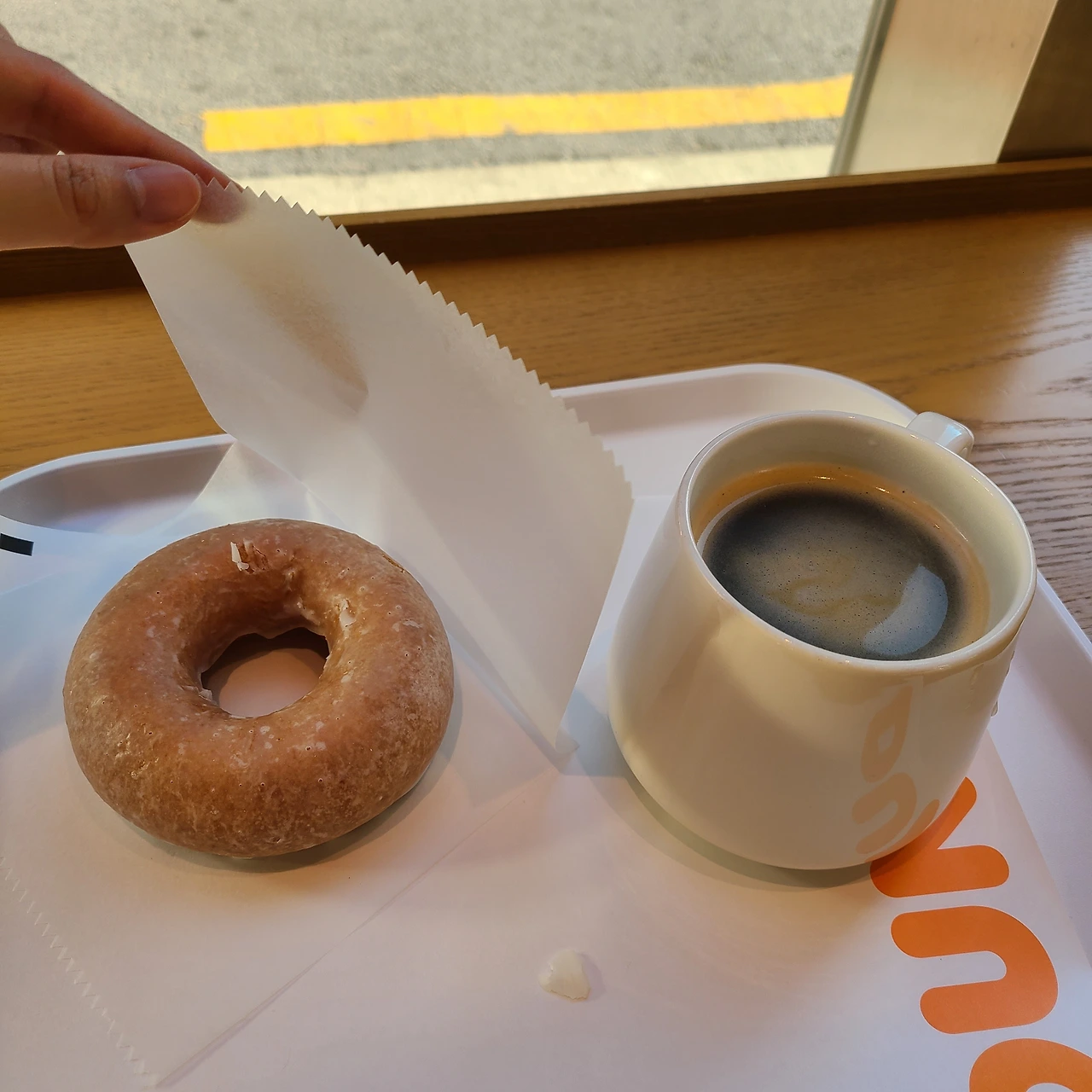 근처에 있는 던킨에서 소금우유 도넛 하나와 따뜻하고 묵직한 아메리카노로 점심을 대신했다.