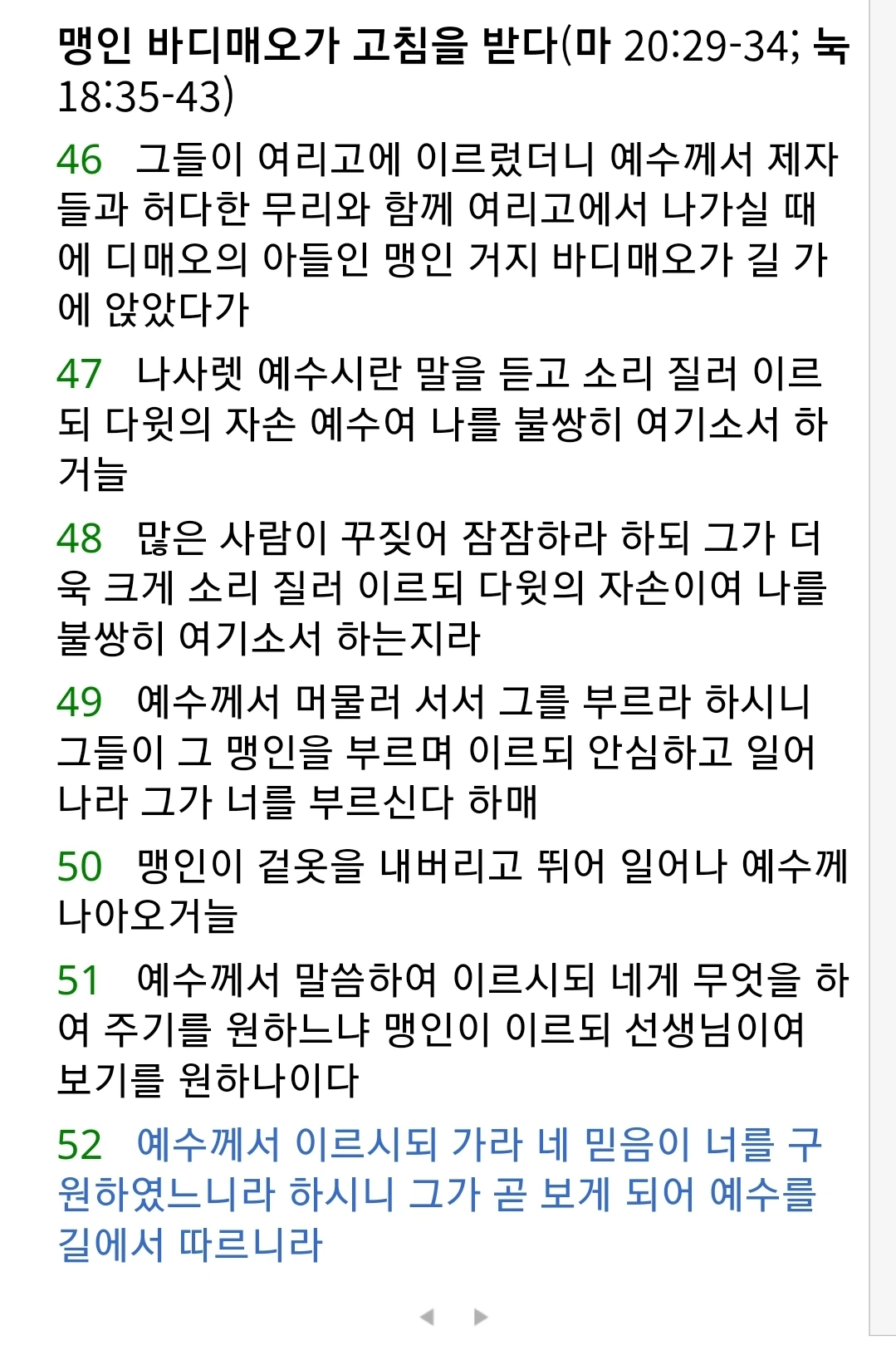 맹인 바디매오처럼 간절히 예수님을 부르짖으며 나아가길 원합니다. 오늘 제 영적 눈을 열어 주셔서, 세상의 거짓과 소음에 흔들리지 않고 진리의 빛을 볼 수 있도록 인도해 주옵소서.