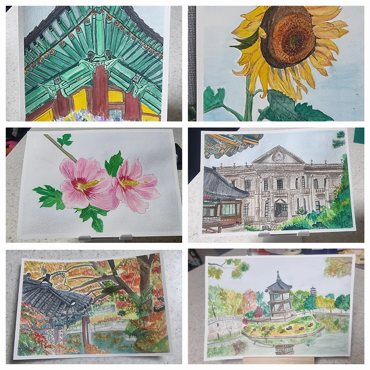 자투리 시간에는 스케치를 하고 일이 일찍 끝나는 날에는 채색을 했다.