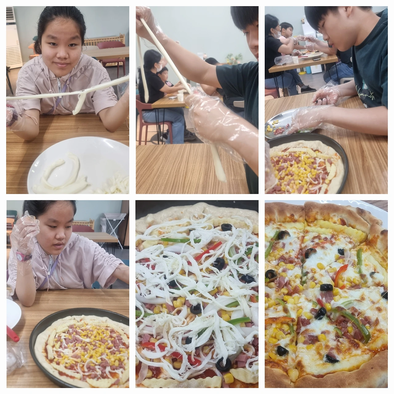 재료를 나누어 주시고 설명을 들으면서 우리는 열심히 치즈를 만들기 위해서 커드(치즈가 되기 전 응고된 우유 덩어리)를 잘게 잘라 뜨거운 물에 40초 담그고 접고 접어서 모짜렐라 치즈를 만들고 길게 늘여서 찢어 먹는 스트링 치즈를 만들었다. 잘게 찢어서 피자를 만드는 데 사용했다.