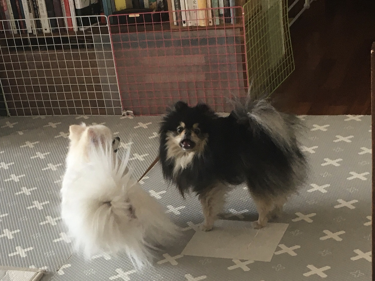강아지 한 쌍과 새끼를 키우다 보니 암수 한 쌍이 연출하는 바디랭귀지를 알아내곤 한다. 평소에는 쌀쌀맞은 메이가 요사이는 아주 친절해졌다. 게다가 적극적으로 루이에게 요구하기도 한다. 자세히 관찰해보니 그들만의 언어가 있었다. 재미있고 신기하고, 본능이란 이런 것인가 보다.