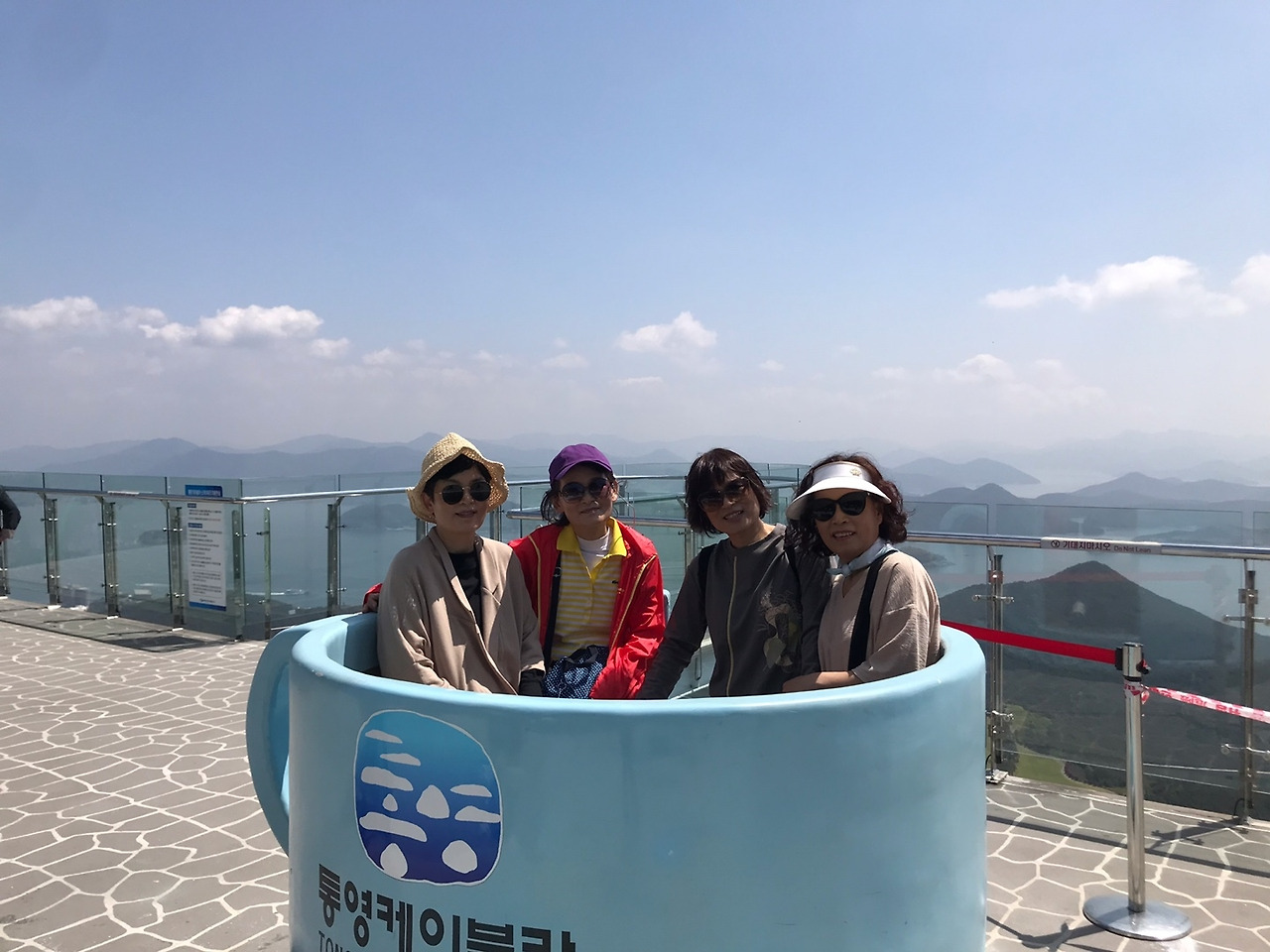 통영은 고려대 출판부 다닐 때 연수로 와 본 적이 있다. 잠깐 바다만 보고 간 거라 별다른 추억이 없다. 통영 케이블카를 꼭 타야 한다는 큰 언니말 대로 아침 일찍 체크아웃을 하고 출발했다. 초행길이라 한 번에 완벽하게 길에 접어들지는 못했지만 케이블카 매표소에는 딱 개표에 맞게 도착했다.