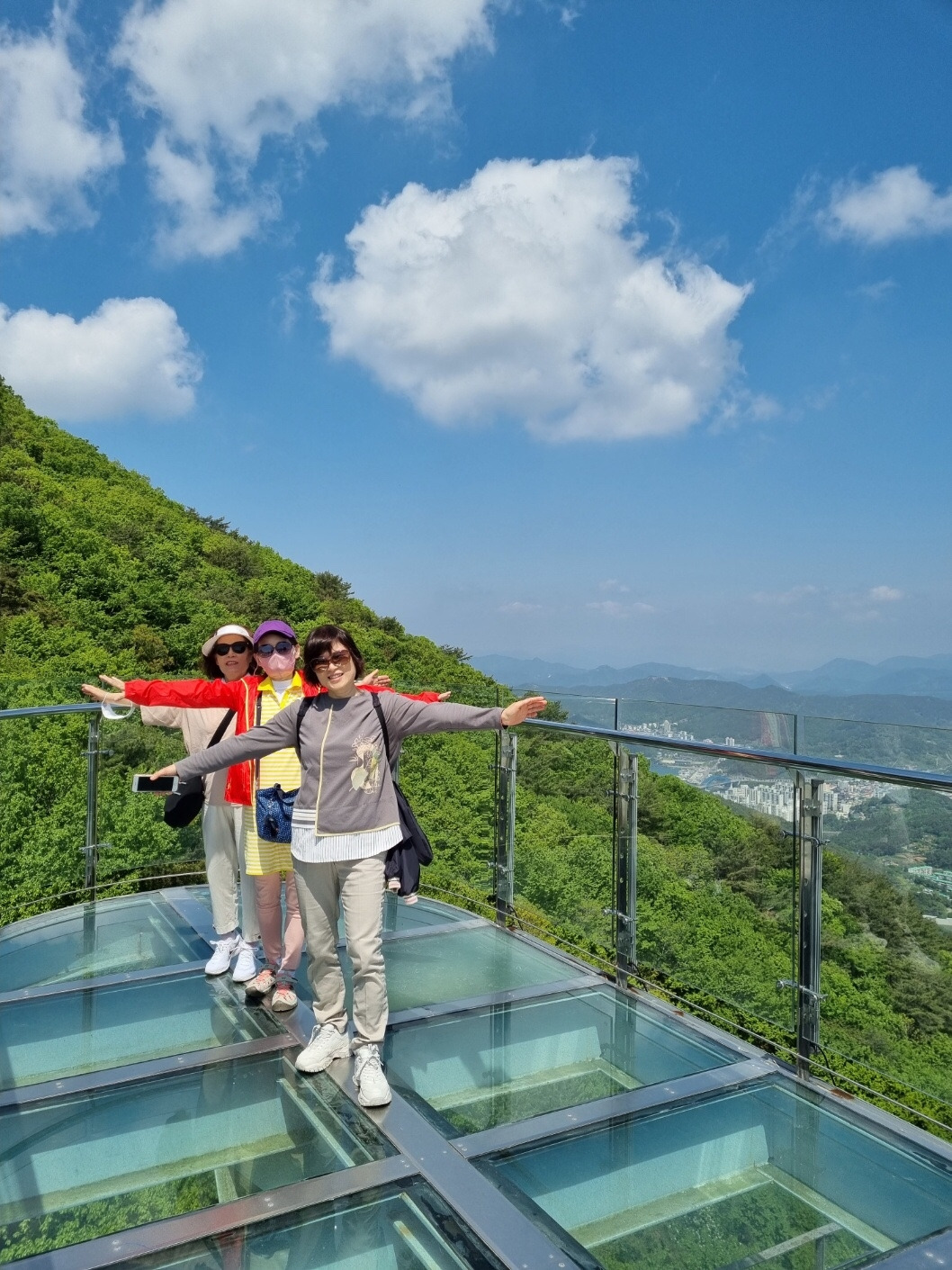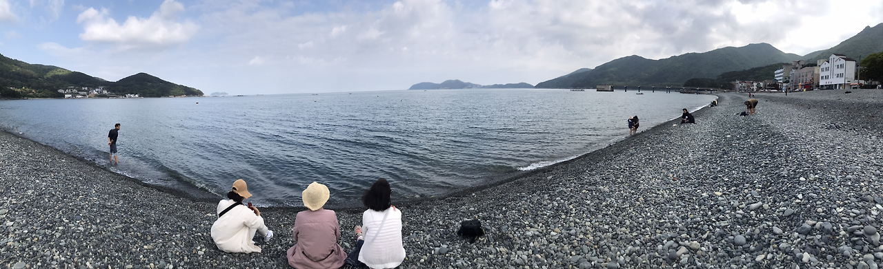거제도는 둘째 언니가 살았던 곳이다. 떠나온 지 10년이 다 되었지만 익숙한 길이라서 손쉽게 드라이브를 시켜주었다. 지인이 소개해준 노자산 파노라마 케이블카도 타보았다. 바닥이 투명해서 아래를 내려다보는 재미도 쏠쏠했다. 푸르른 초록 융단을 깔아놓은 듯해서 아찔하기보다는 푹신할 것 같았다. 날씨 또한 한 몫했다. 개장한 지 1년밖에 안 되어 사람도 별로 없어서 바로 탑승을 했다. 노자산 정상까지 꼭 가봐야 한다는 둘째 언니를 따라서 올라갔다. 파노라마 사진도 처음으로 찍어보았다. 큰언니가 몽돌해변에 가보자 해서 해변가에 앉아 바다멍을 때렸다. 동글동글 예쁜 돌멩이들이 있는 해변이라 모래를 털어야 하는 번거로움이 없어서 좋았다.
