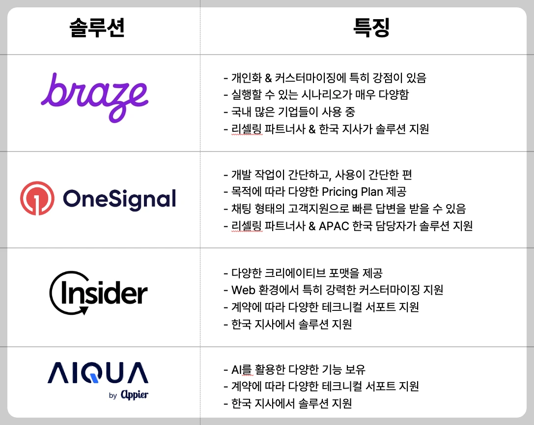 CRM 자동화 솔루션들이 프로모션을 짜주지는 않으니, 상대적으로 가벼운 솔루션을 찾는 것이 가성비를 높이는 것도 방법일 수 있다.