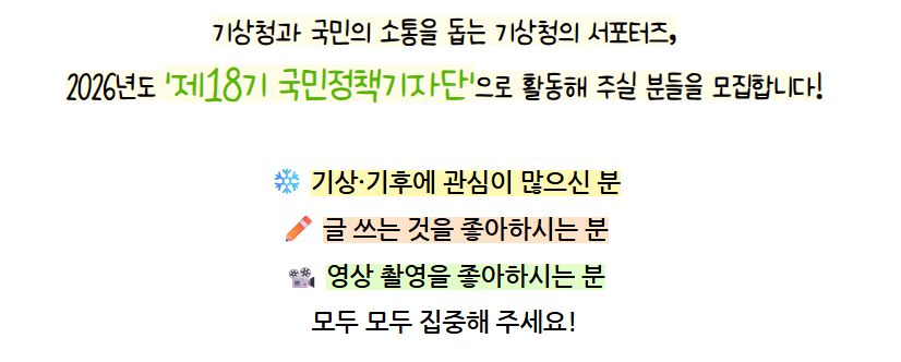 기상청에서 제18기 국민정책기자단을 모집했다.