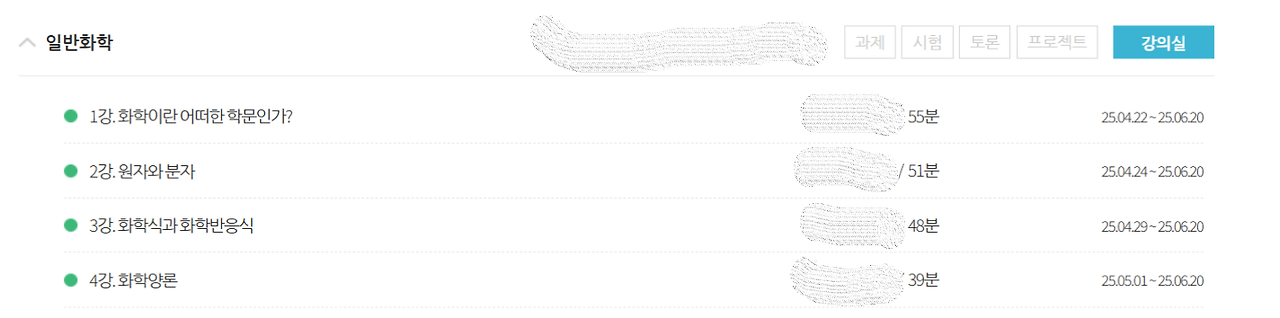 전공수업은 수업시작일에 15강 전체를 짜잔~하며 전부 오픈했는데 이 수업은 시간 간격을 두고 오픈하는 방식이다.