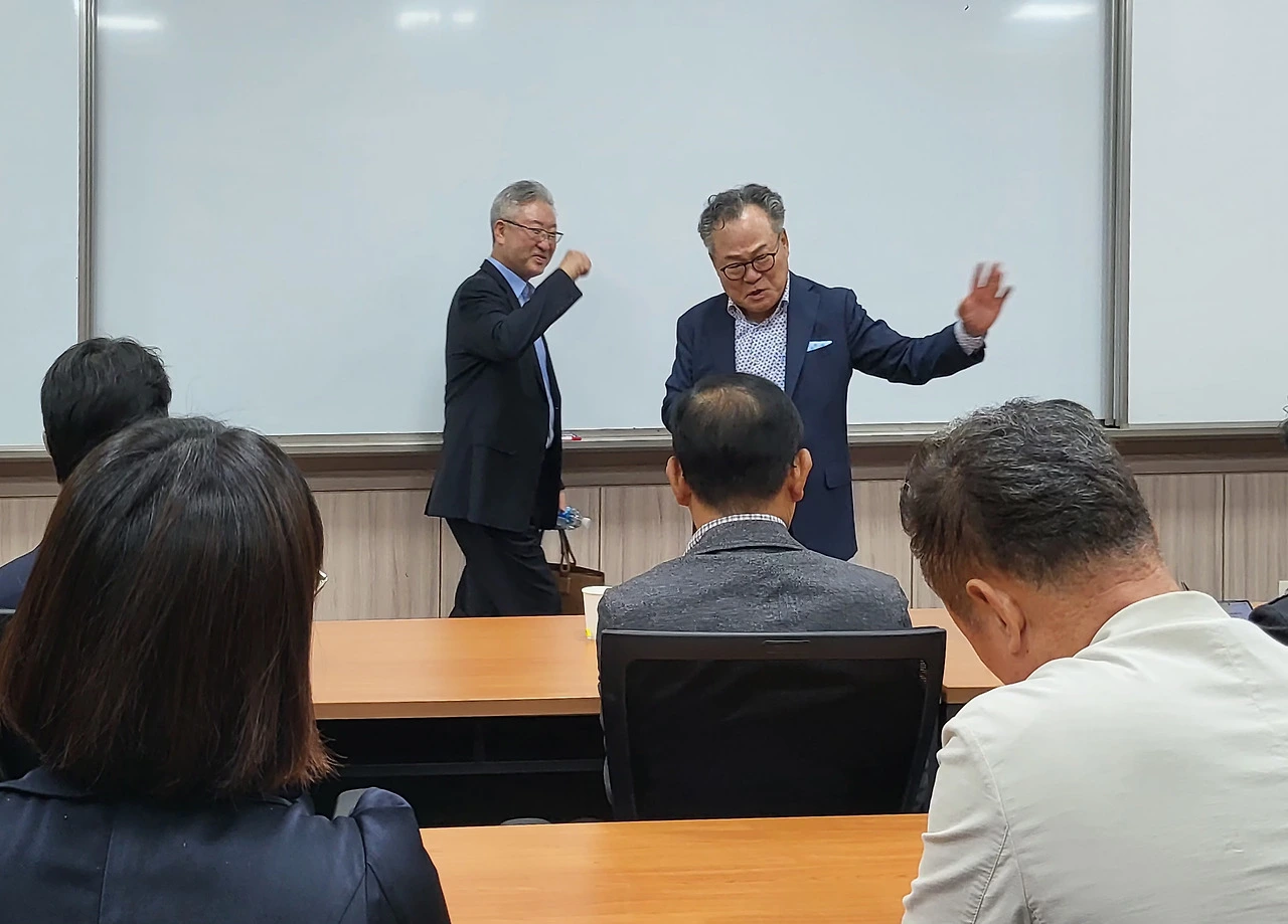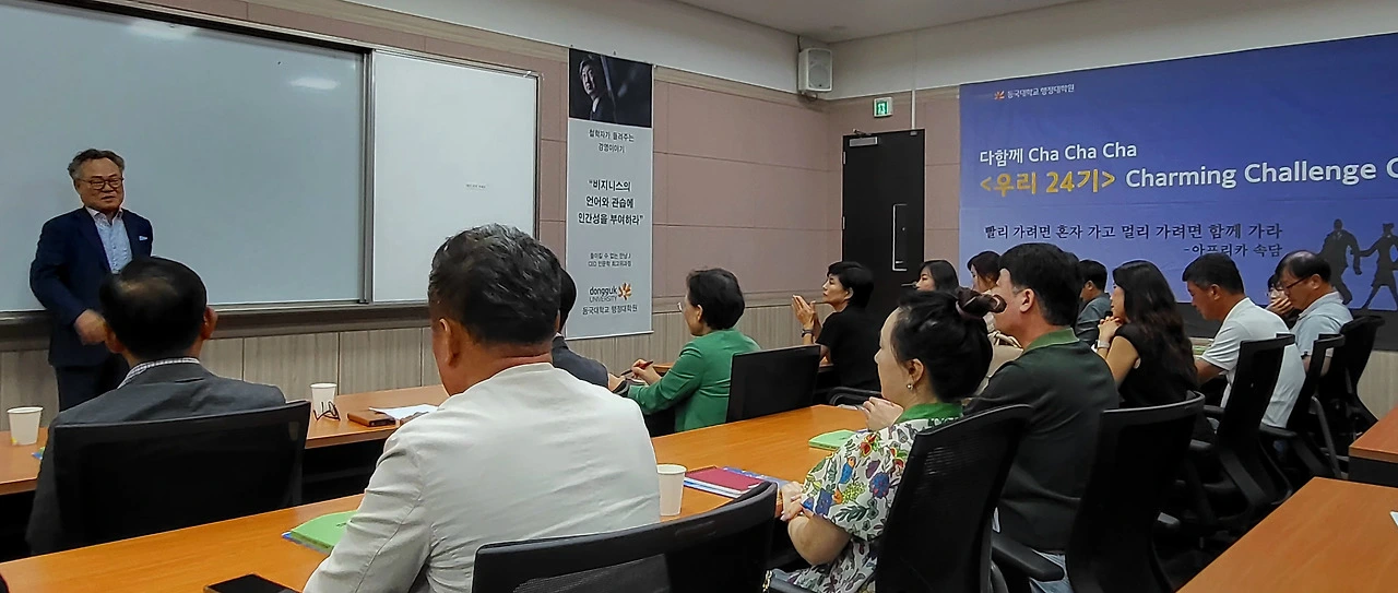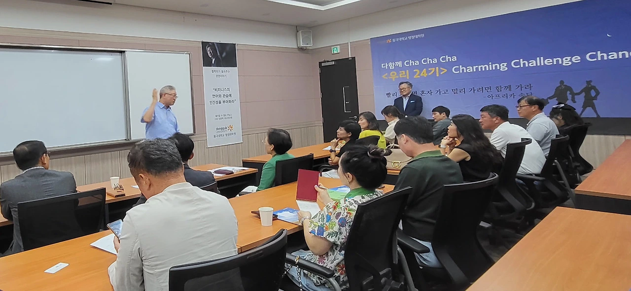 강의가 끝난 뒤, 박영희 주임교수께서 20여 년간 이어온 인문학 강의 전통을 언급하시며 "주옥같은 리더십 강의였다"는 말씀과 뜨거운 박수로 특강은 마무리되었다.