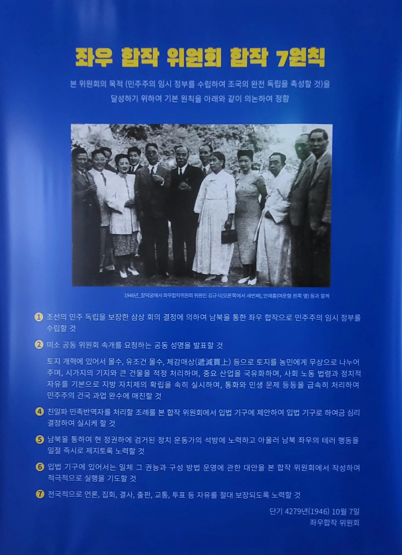 일제 말기 황민화 정책 속에서도 몽양은 민족을 지키기 위해 위험한 줄타기를 선택했다. 해방 직후에는 조선건국준비위원회를 조직해 좌우 합작 통일정부 수립을 꿈꾸었지만, 좌익은 그를 온건하다 비판했고, 우익은 공산주의자라며 공격했다. 결국 1947년 7월 19일, 그는 서울시내 한복판에서 암살당하고 말았다.