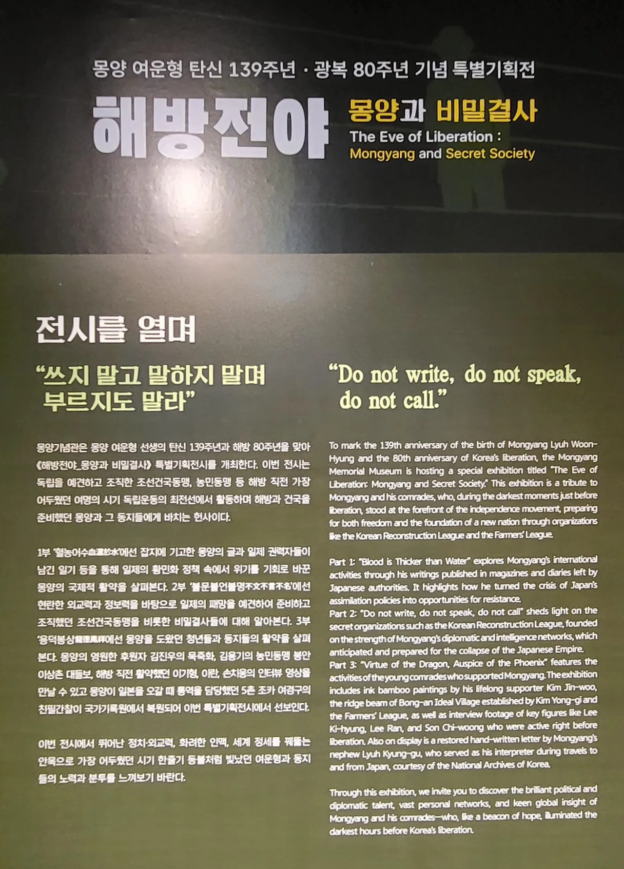 "몽양 여운형을 좌익·우익으로 단순히 나누는 것은 역사를 왜곡하는 일입니다. 그는 무엇보다 독립운동가였습니다."