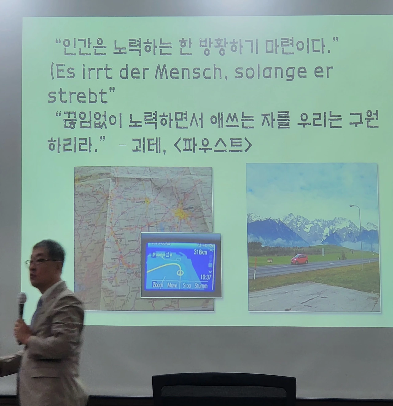 오늘 강의에서 가장 인상 깊었던 질문은 "100세 시대, 어떻게 살아갈 것인가?"였다. 인문학 과정을 듣는 우리 학생들에게도 중요한 화두다. 전반기의 인생이 도전과 열정의 시간이었듯, 후반부의 인생은 어떤 길을 걸어야 할 것인가. 손 교수의 강의는 괴테를 모델로 삼았지만, 결론은 분명했다. 지금 우리가 동국대 행정대학원 24기로 인문학 과정을 밟고 있는 그 자체가 답이라는 것이다.