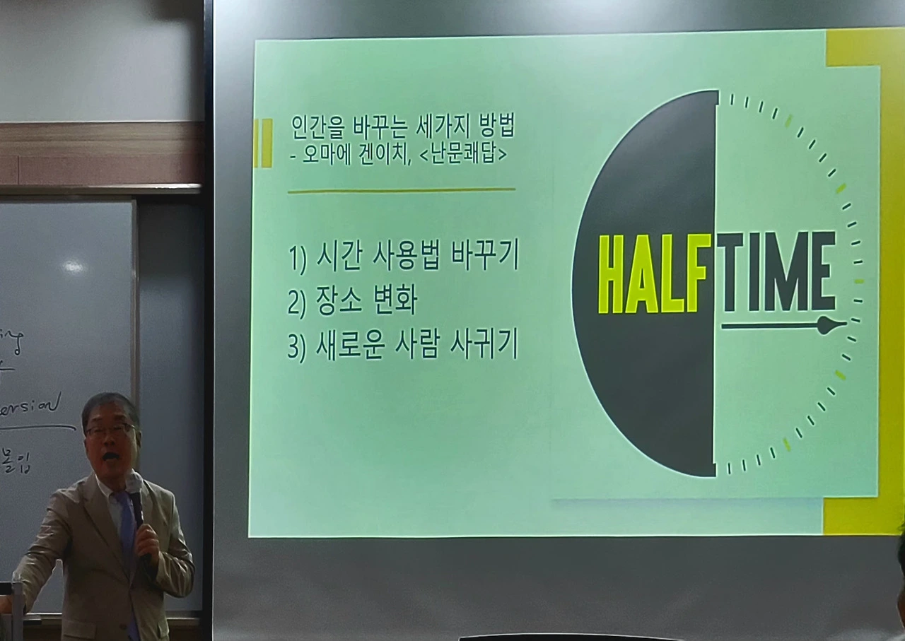 첫째, 시간을 바꿔라. 하루 24시간은 모두에게 공평하게 주어지지만, 어디에 쓰느냐에 따라 인생은 달라진다. 작은 집중의 순간이 삶 전체를 바꾼다. 수요일 저녁 늦은 시간, 우리가 캠퍼스 강의실에 모여 공부하는 이 시간 활용이 바로 그 실천이다.