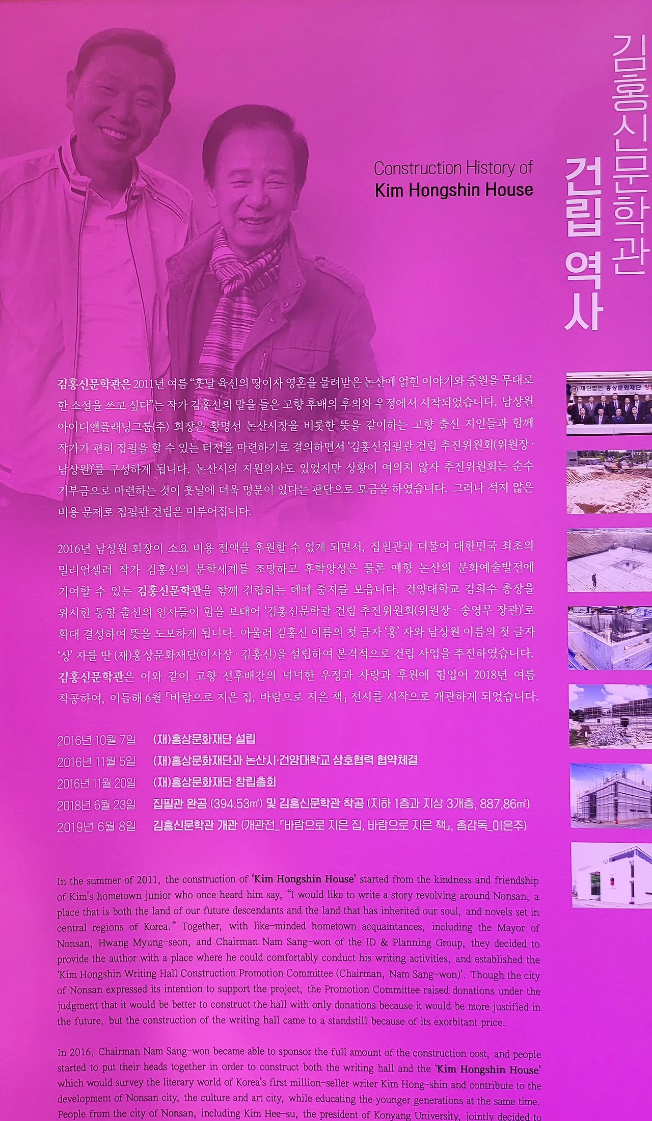 "인화(人和)", 72억 원을 들여 문학관을 지어준 후배 남상원 회장. 영화 「조선남자」로 50억 손해를 보고, 「천주교인 김대건」으로 120억 손해를 봐도, 다시 문학관을 지어주는 그 우정. 그것은 한 사람의 삶이 빚어낸 기적이다.