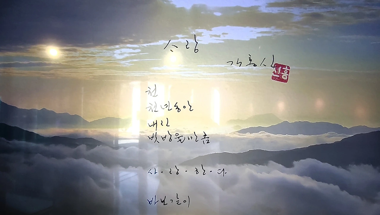 "그리고 저는 매일 아침 마음의 글씨를 씁니다. 제 마음을 정리하는 시간이죠. '사랑', '용서', '감사'... 이런 단어들을 쓰면서 하루를 시작합니다."