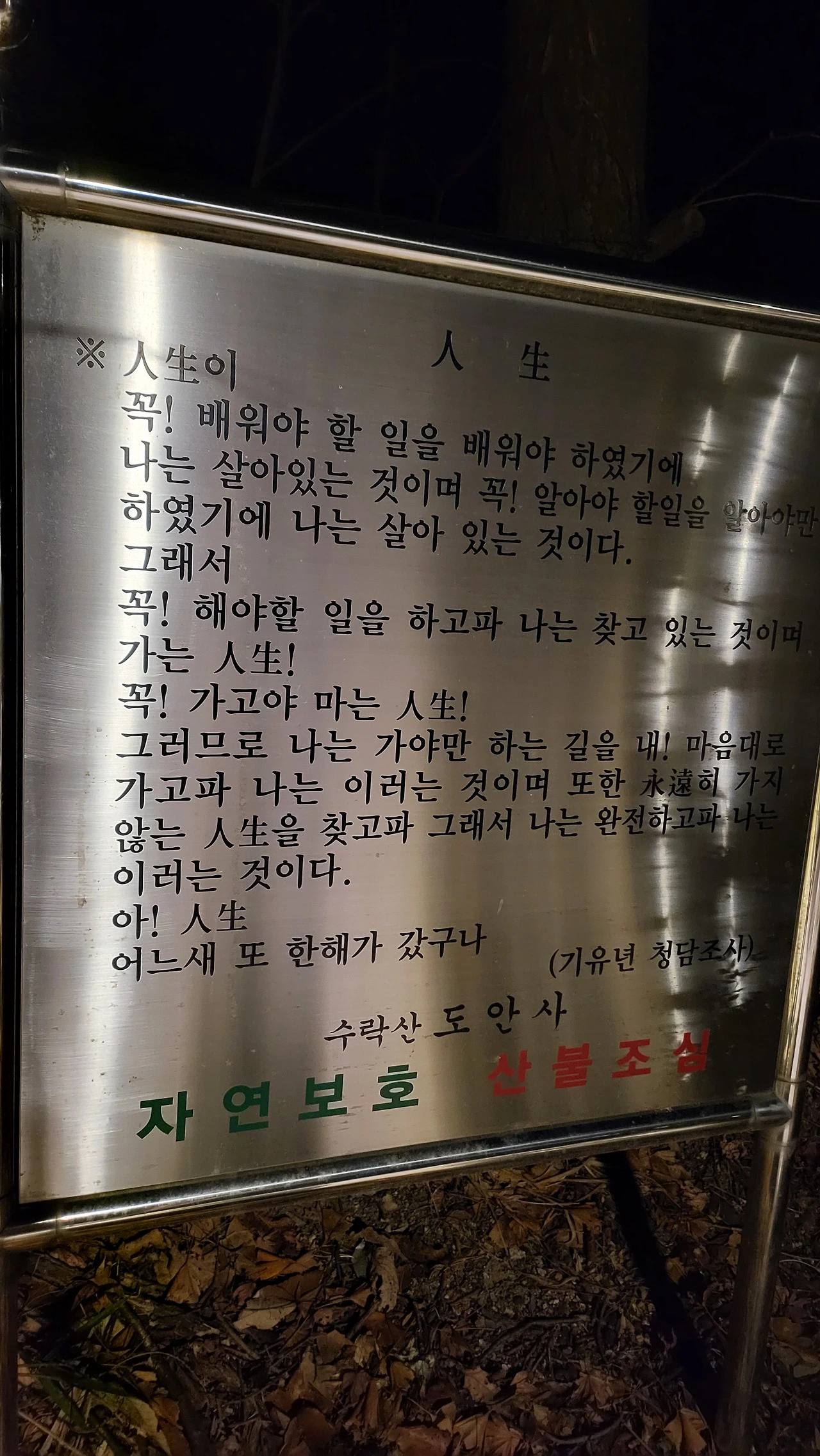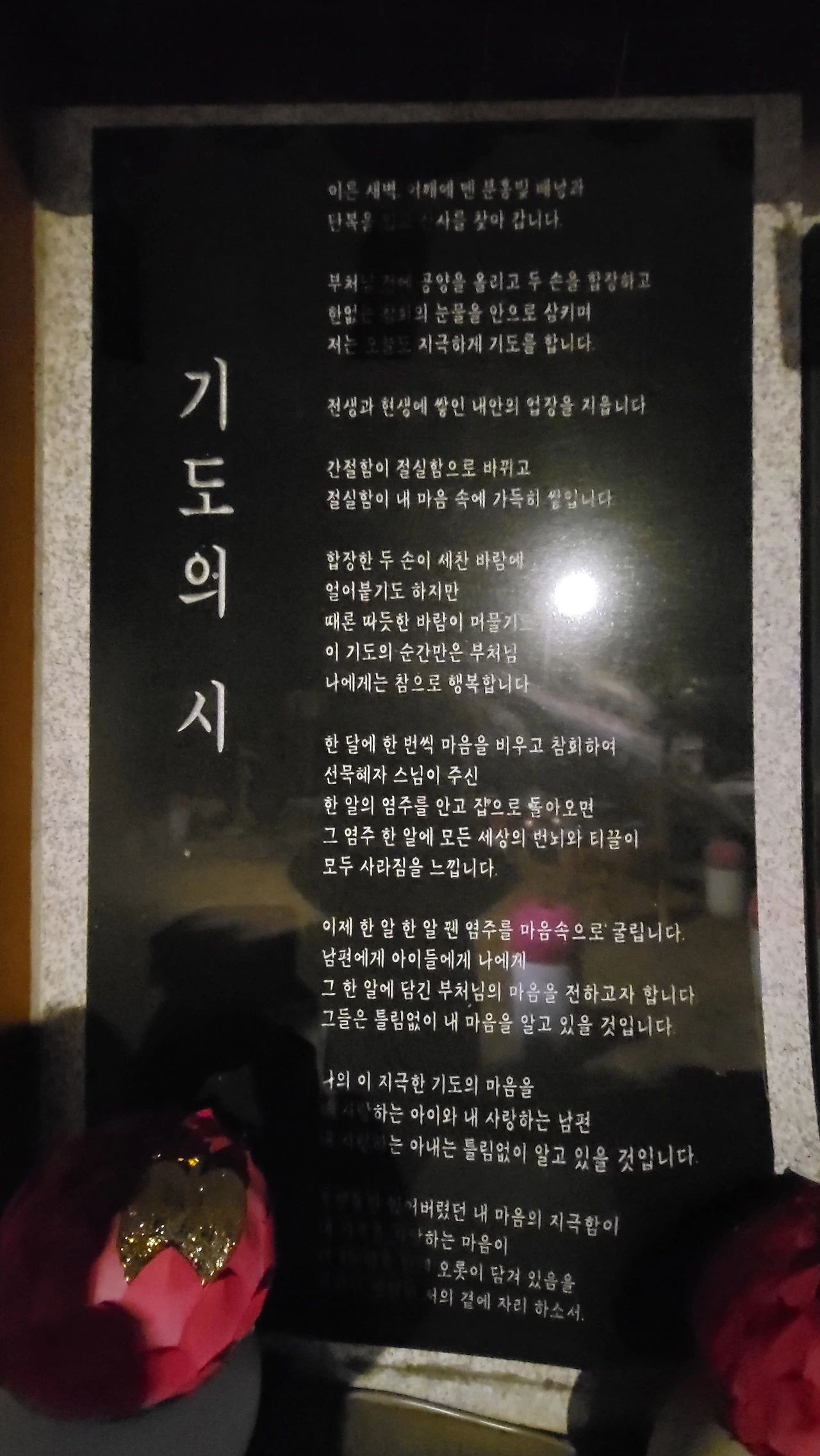 스님이 좋아하시는 "一心光明佛"처럼 기원은 계속된다. 병오년 초하루와 초이튿날 사이 두 번의 부광약금과 한 번의 정영침벽이 삶으로 스며들었다. 한강의 금빛 태양, 수락산의 고요한 달빛, 도안사의 새벽 태양, 그것은 풍경이 아니라 삶이었고 기원하는 마음 그 자체였다. 태양은 다시 뜨고 달은 다시 고요해질 것이다. 부광약금 정영침벽, 그 반복 속에서 오늘도 합장한다. 병오년의 초하루 초이튿날의 기원은 그렇게 이어졌다. 수락휴 '어린 왕자'에서 손주 서진이와 함께 본 달빛처럼.