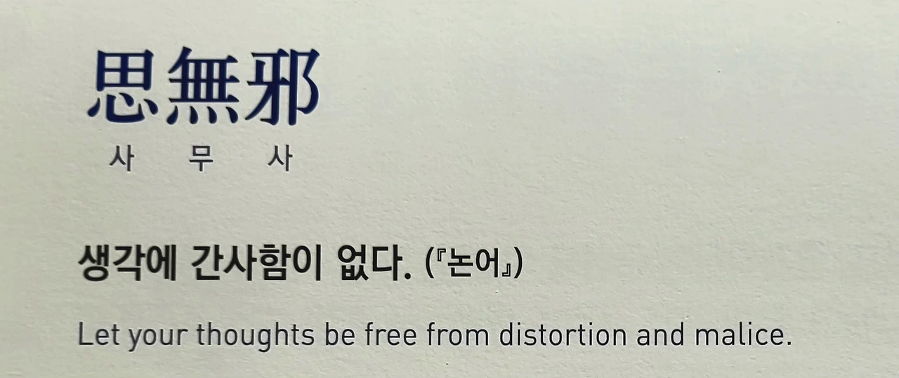 첫 구절 "학이시습지, 불역열호(學而時習之, 不亦說乎)"로 문을 열고, 증자의 삼성오신(三省吾身)으로 하루를 돌아보았다. 김종필 전 총리께서 특별히 좋아하는 사무사(思無邪) "생각에 간사함이 없다"는 위정편(爲政篇)에서 만났다.