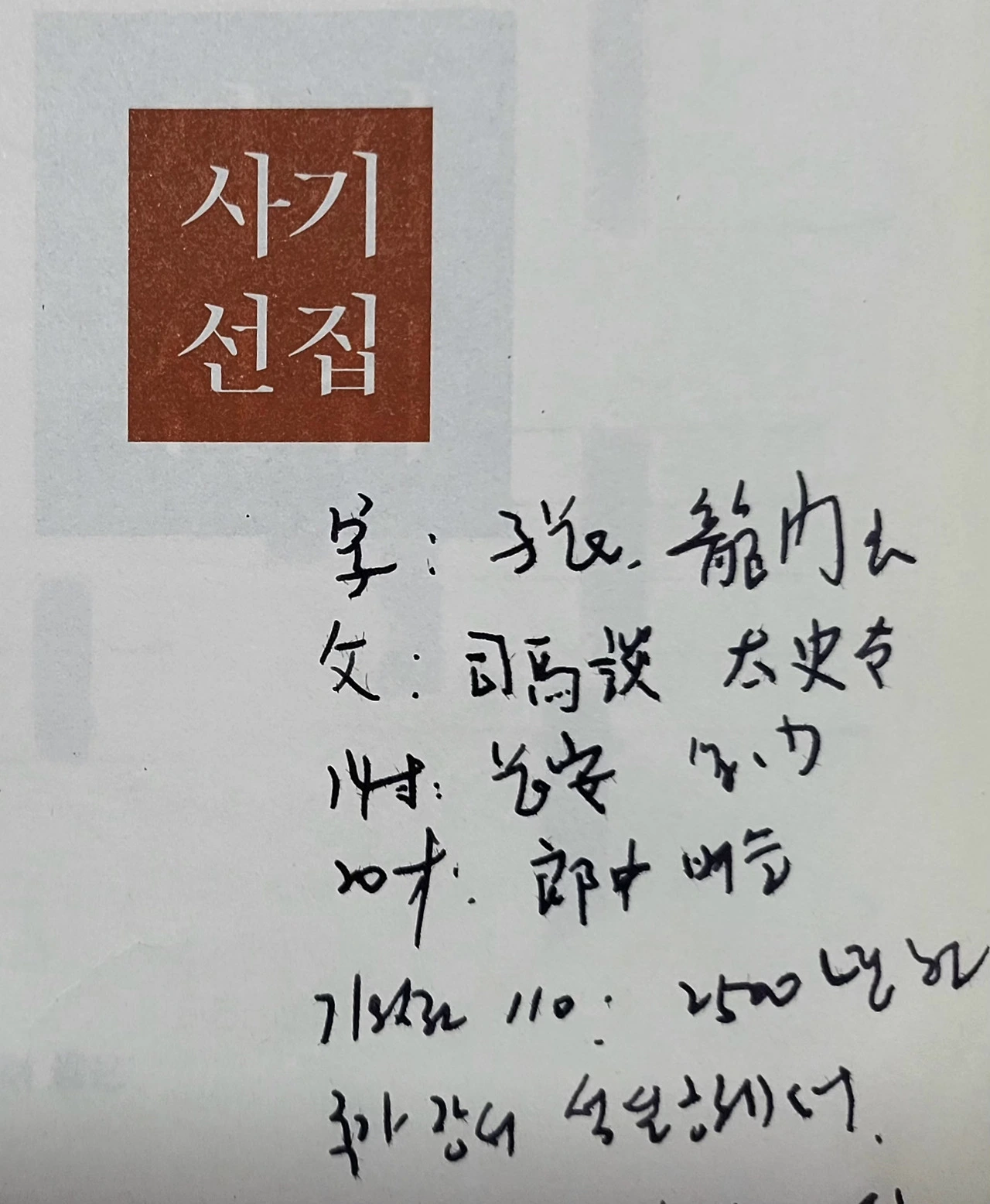 요즘 백팩 속에는 사마천(司馬遷)의 『사기(史記)』가 들어있다. 예전보다 술술 읽힌다. 궁형이라는 극한의 치욕을 감내하면서도 붓을 놓지 않았던 사마천, 오직 역사서 완성이라는 소명(召命) 하나로 버텨낸 그 삶이 8주간 논어를 읽고 나서야 비로소 가슴으로 이해된다. 자신이 해야 할 일을 아는 사람은 굴욕도 딛고 일어선다.