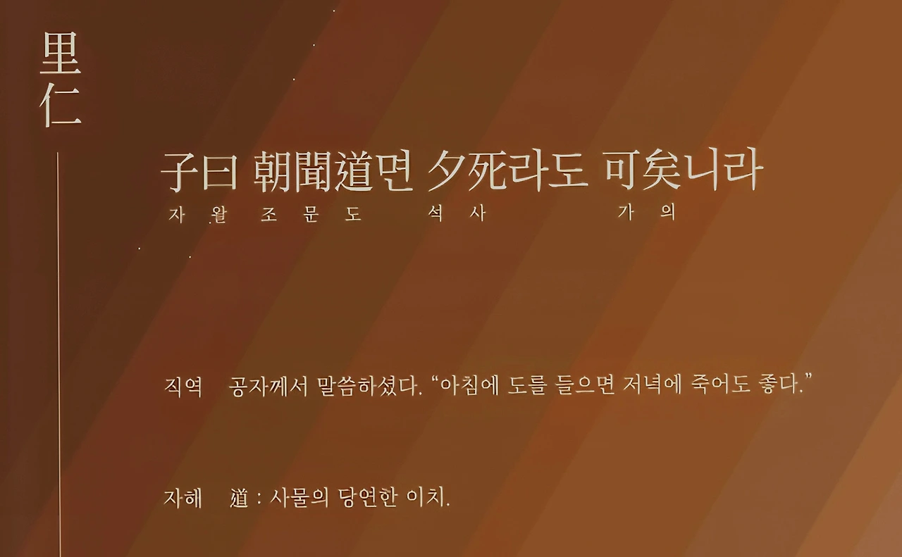 사실 나도 논어와의 인연이 처음은 아니었다. 2년 전 직장 동우회 논어 공부반에 5개월간 참여한 적이 있었지만, 그때는 책 든 가방만 들고 다녔다 해도 과언이 아니었다. 也, 矣 같은 어조사 앞에서 번번이 막히다 결국 중도에 내려놓았다. 그런데 이번은 달랐다. 정통 중국어를 전공한 철학박사의 심오한 전수가 달라서였을까, 아니면 귀가 순해져 모든 말을 객관적으로 듣고 이해할 수 있는 세월의 시간이 되어 비로소 받아들일 그릇이 만들어진 때문이었을까. 아마도 둘 다였을 것이다.