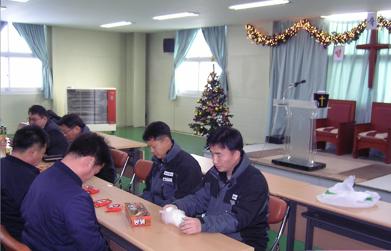 그리고 그다음 주말 근무 시, 구급차(남한에선 앰뷸런스라고 한다)를 타고 약 1km 떨어진 곳으로 향했다. 공사가 거의 마무리되어 가던 신원에벤에셀 개성법인 신축공장 주재원 숙소였다. 마룻바닥에 뺑 둘러앉은 임시로 마련된 예배당에서 나는 난생처음 북한 땅에서 하나님께 예배를 드렸다.