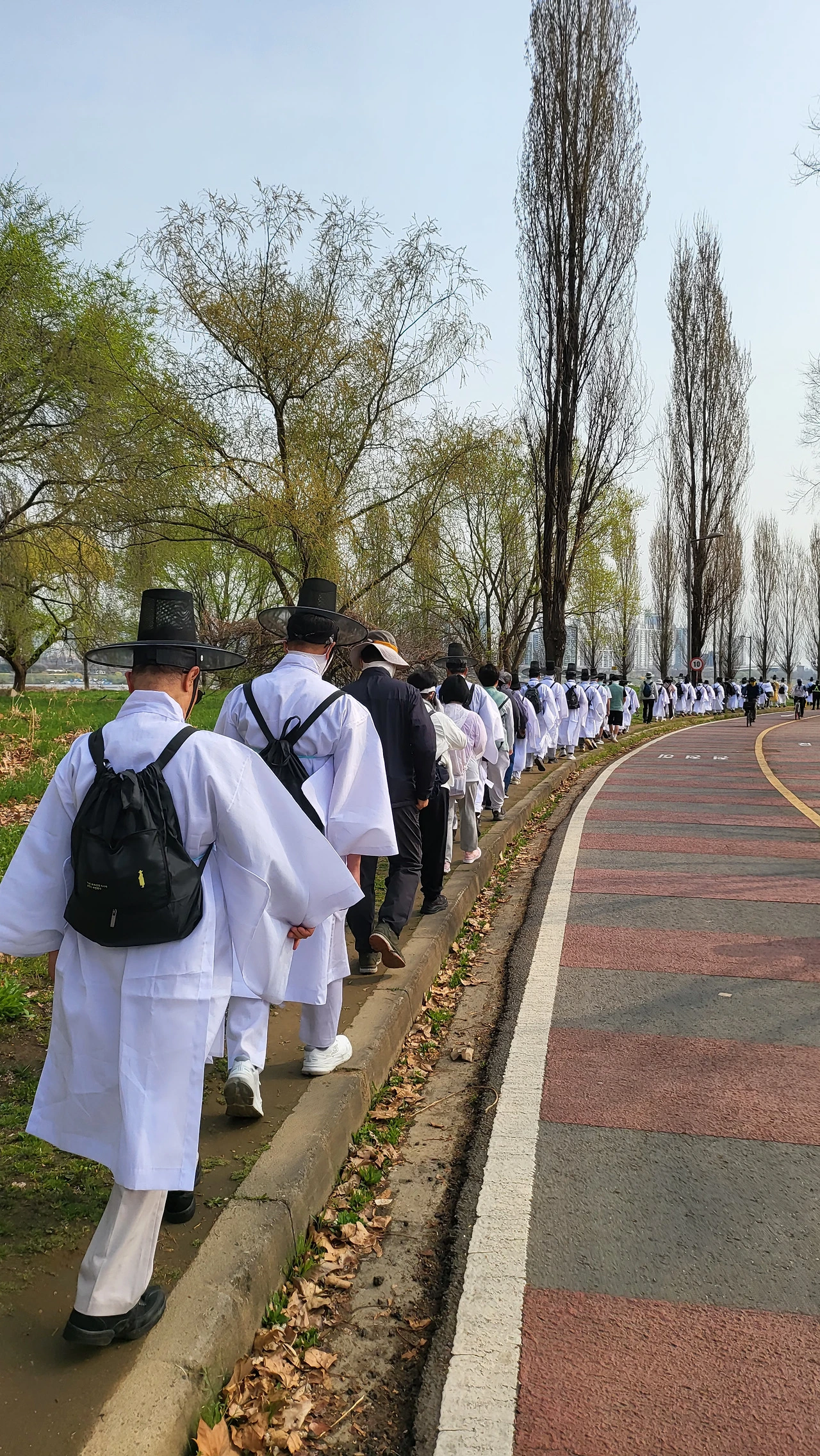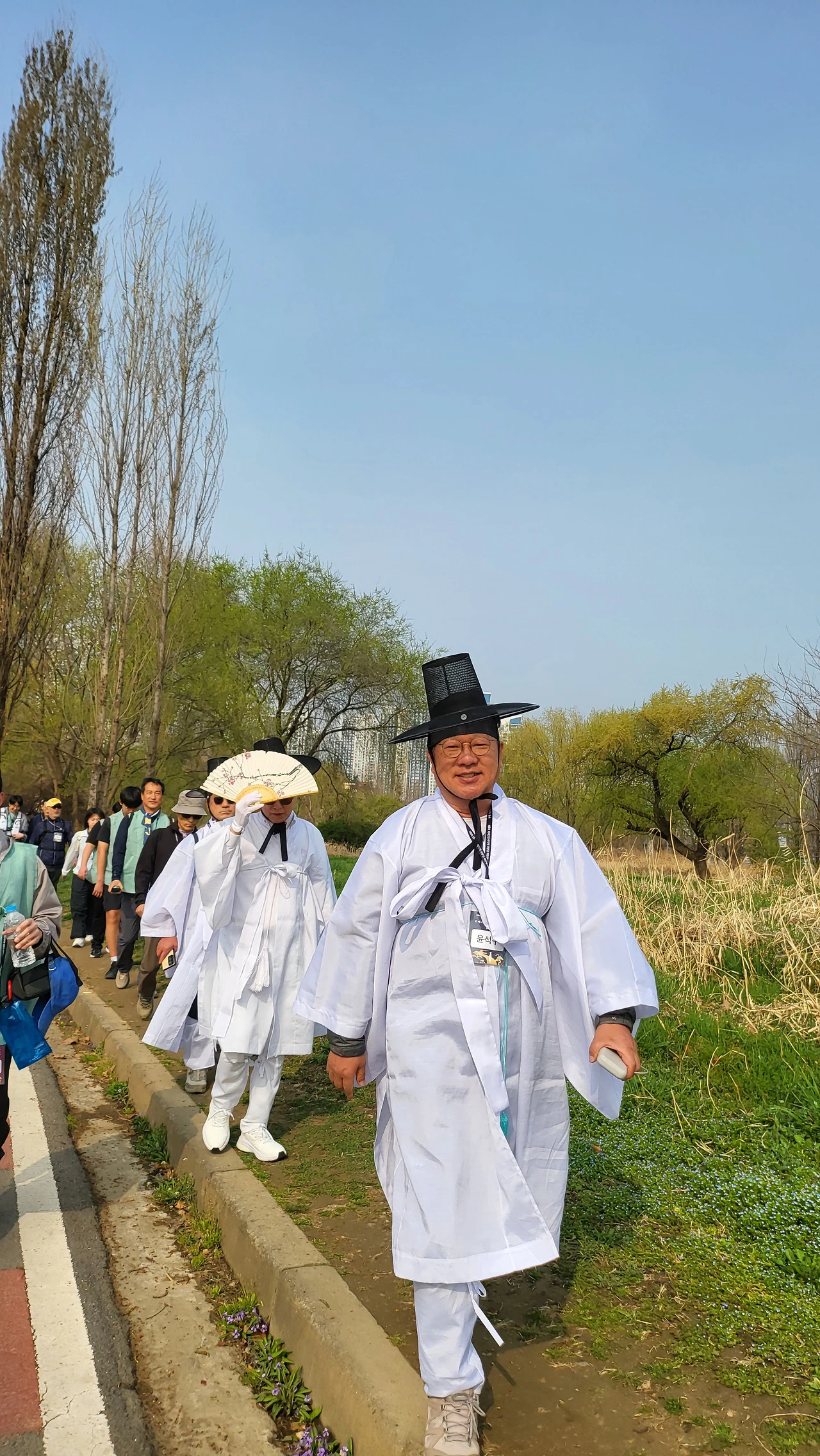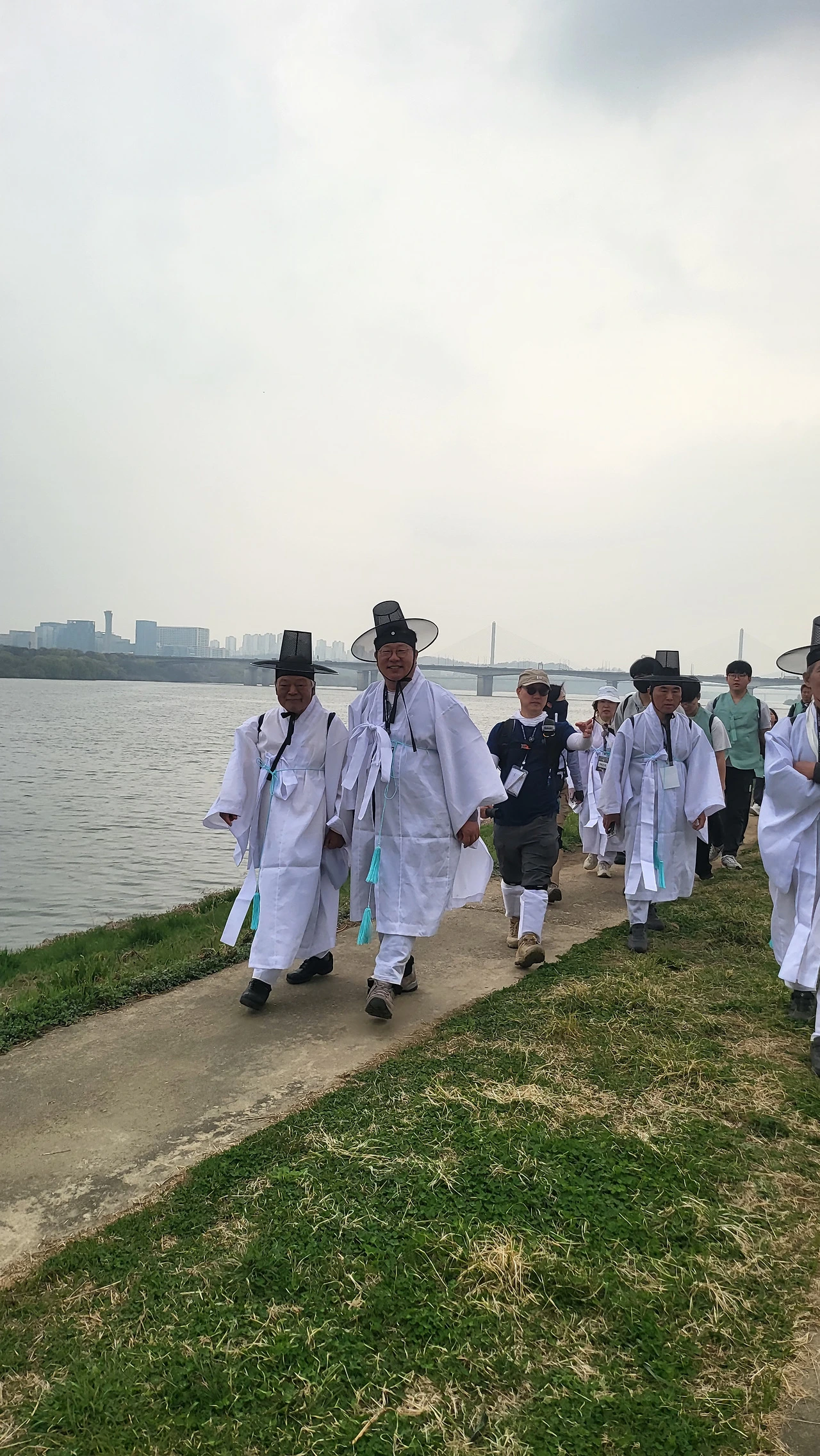 사흘째 날, 봉은사 나루터를 출발해 구리를 지나 남양주 다산 유적지로 향했다. 한강 물길을 따라 이어지는 길은 봄볕이 따사로웠다. 도포 자락이 바람에 나부끼고, 갓 위로 햇살이 쏟아졌다.