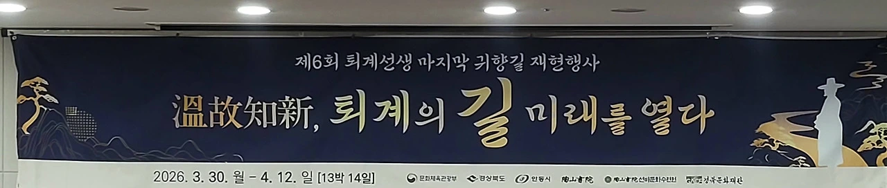 경상북도·안동시·도산서원이 주관하던 퇴계 귀향길 행사가 문화체육부로 격상되어, 제6회 행사가 지난 월요일 경복궁 만춘전에서 개최되었다. 서울 경복궁에서 안동 도산서원까지 270킬로미터, 약 700리를 14일간 걷는 순례길이다.