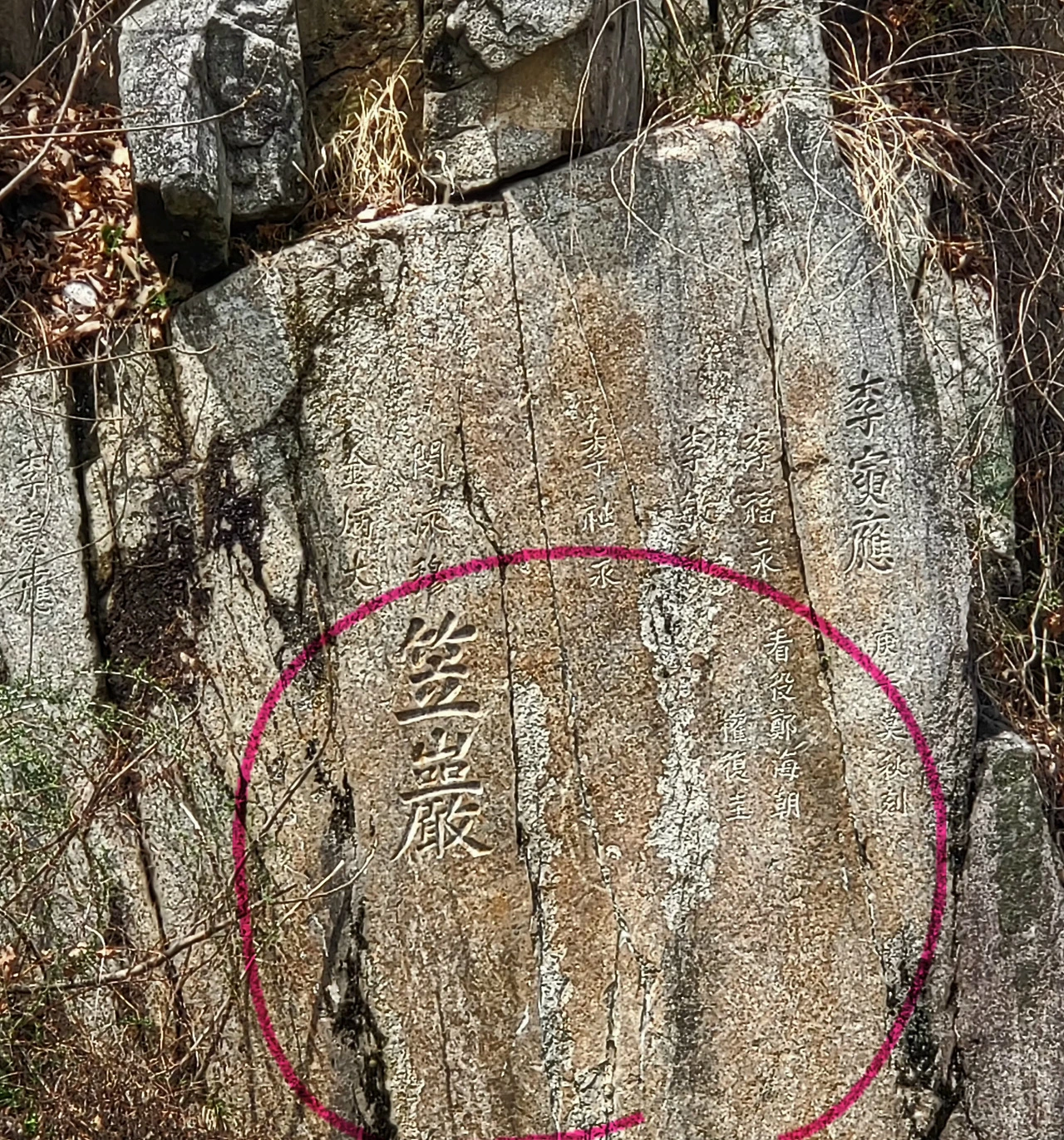 마침 입암(笠巖) 앞에서 딱 한 가지만 건졌다. 갓 쓴 사람이 삿갓바위 앞에 섰다. 그것으로 충분하다.