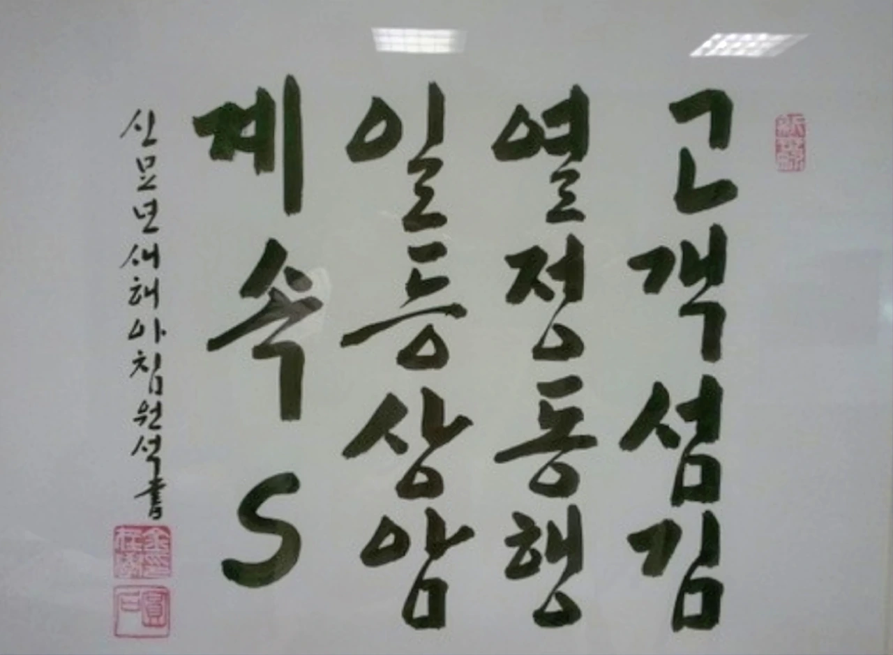 "자, 우리 1등 하고 제주 왔으니 계속 S 1등 해야지요, 다음반기에도 1등하여 그때는 일본 삿포로 또는 후쿠오카 갑시다." 그 목표를 향해 검정 고무신 같이 생긴 돌 해삼 뚜껑盞에 우리 모두 한라산 소주 가득 부어 탐라결의 맺읍시다."