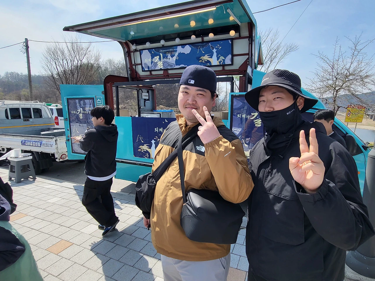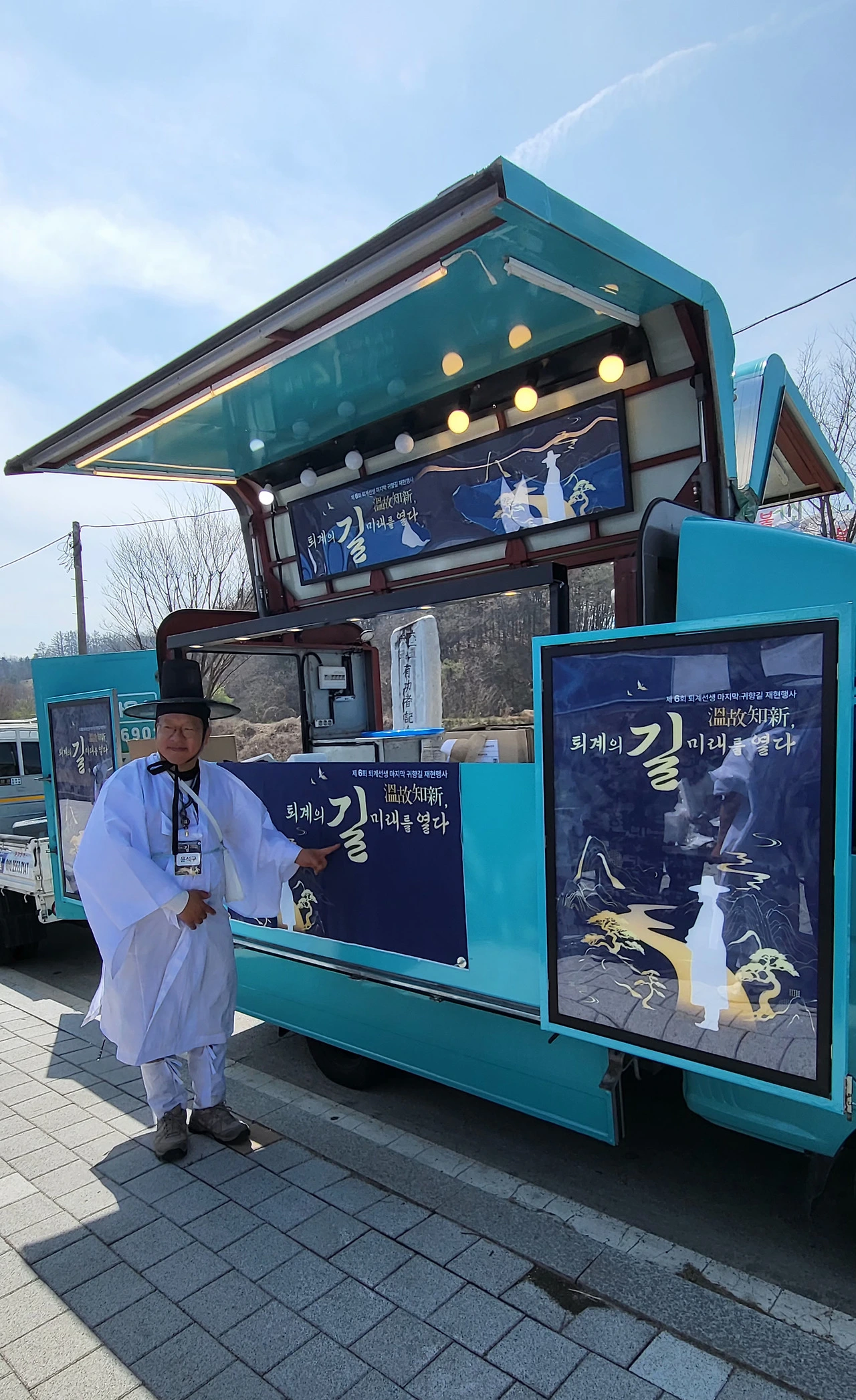 溫故知新, 퇴계의 길 미래를 열다 밥차 앞 인증샷 및 맛있게 점심식사를 마치고 이십여 분 휴식을 마치고 다리를 건넌다. 발걸음이 한결 가볍다. 강바람도 살랑살랑 시원하다.