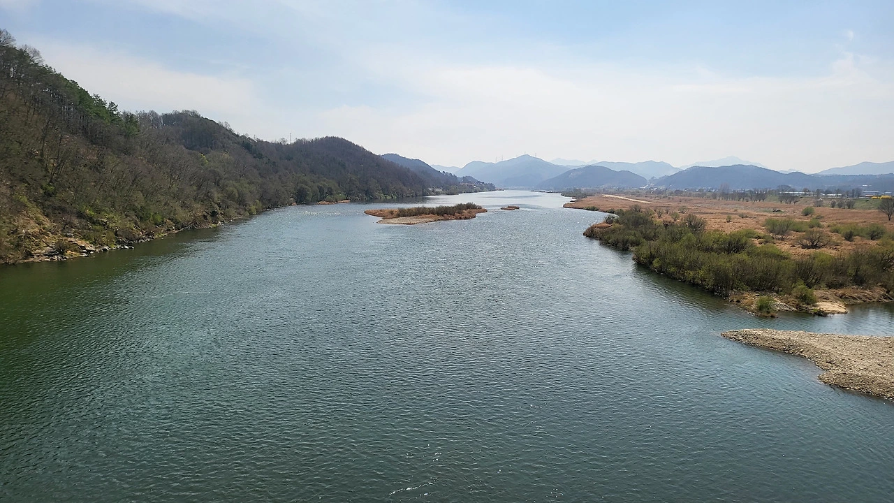 오늘 이 다리를 건너 충주로 가는 뚝방길을 걸으며 문득 그런 생각이 든다. 어쩌면 이렇게 강경 황산대교에서 나의 고향 세도면 반조원 리 442번지까지의 풍경과 똑같을까. 흐르는 강물 사이에 버들피리 나무들이 연초록 새순을 틔우고, 수십마리 오리 떼가 비상하고, 가끔 왜가리도 한 마리 서 있다.