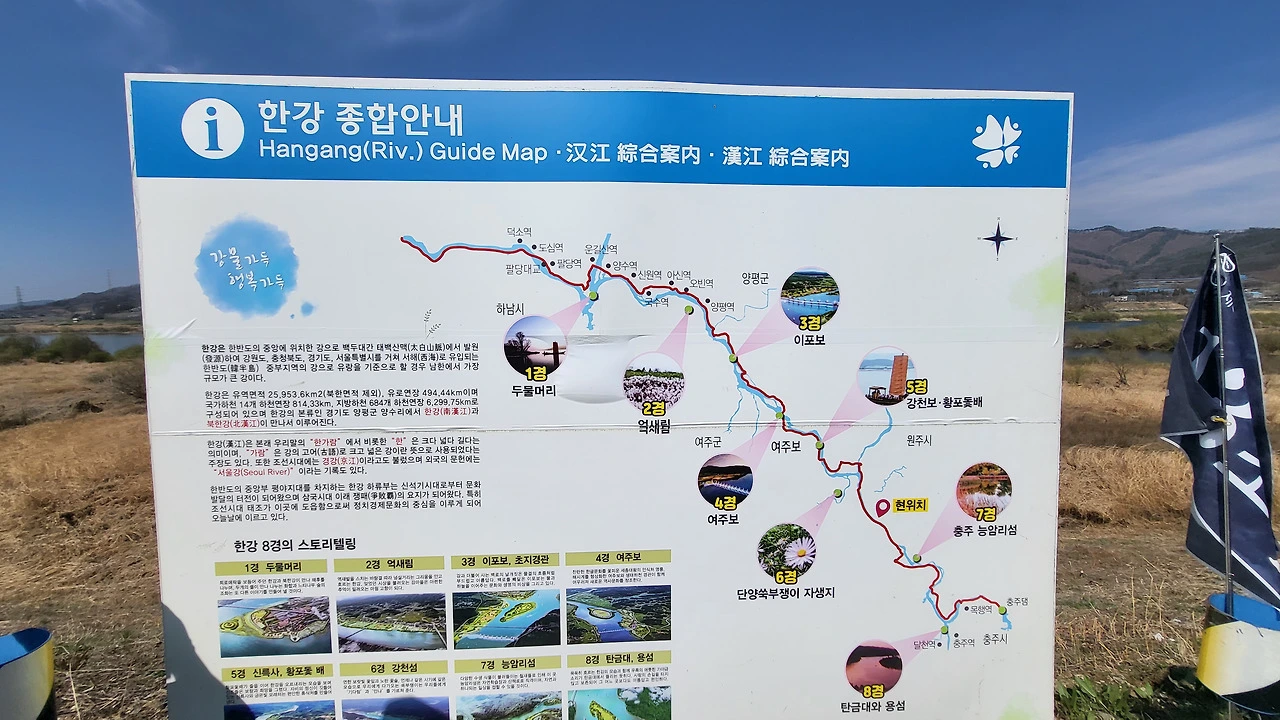 행정안전부가 선정한 '우리 마을 녹색길 베스트 10' 전국 최고의 명품길이었다. 우리나라 유일의 탄산온천 지대인 앙성온천광장에서 시작해 논과 밭, 과수원이 어우러진 농촌 풍경, 산수유 단풍나무 터널, 자연 그대로의 남한강과 한강 8경 능암리섬까지. 한 폭의 산수화 같은 풍경이 펼쳐지는 최고의 코스였다.