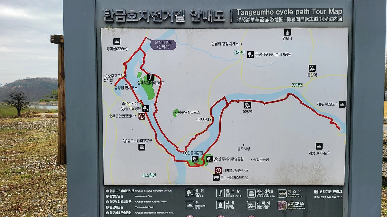 발목 통증이 시계처럼 규칙적으로 찾아온다. 아파 오는 순간이 곧 점심식사 시간을 알려주는 신호임을 직감한다. 그렇게 발목 시계를 달고 걷다 보니 어느새 충주의 명소, 중앙탑 인근에 도착했다.