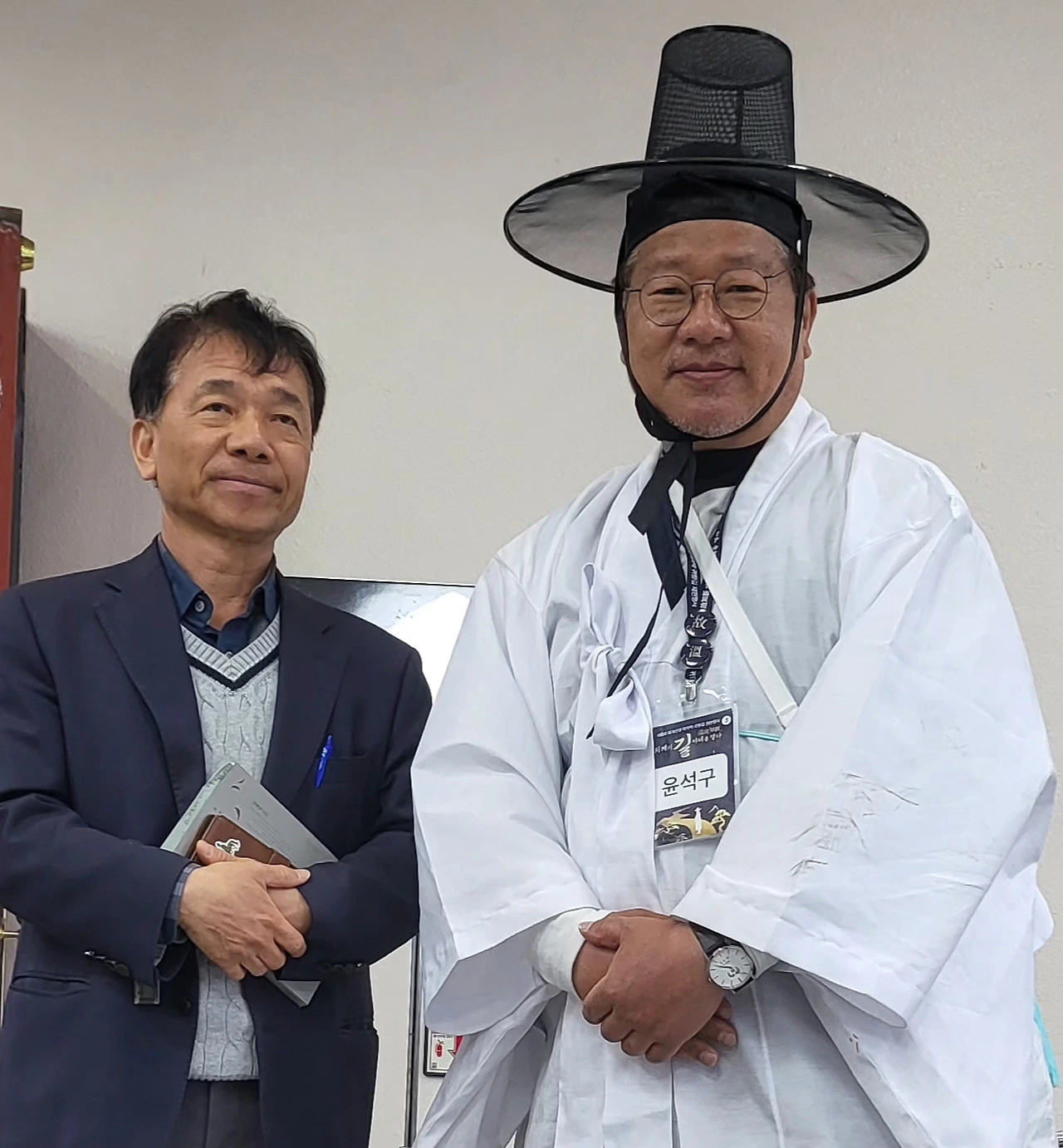 강당 입구에서 반가운 얼굴이 기다리고 있었다. 신병주 교수님이었다. 오래전 무섬마을, 부석사, 소수서원 등 역사탐방 시 강사로 해설해 주셨던 인연이 있는 분이다. 오늘 이 자리에서 다시 만나니 더욱 반가웠다. 함께 사진을 찍었다.